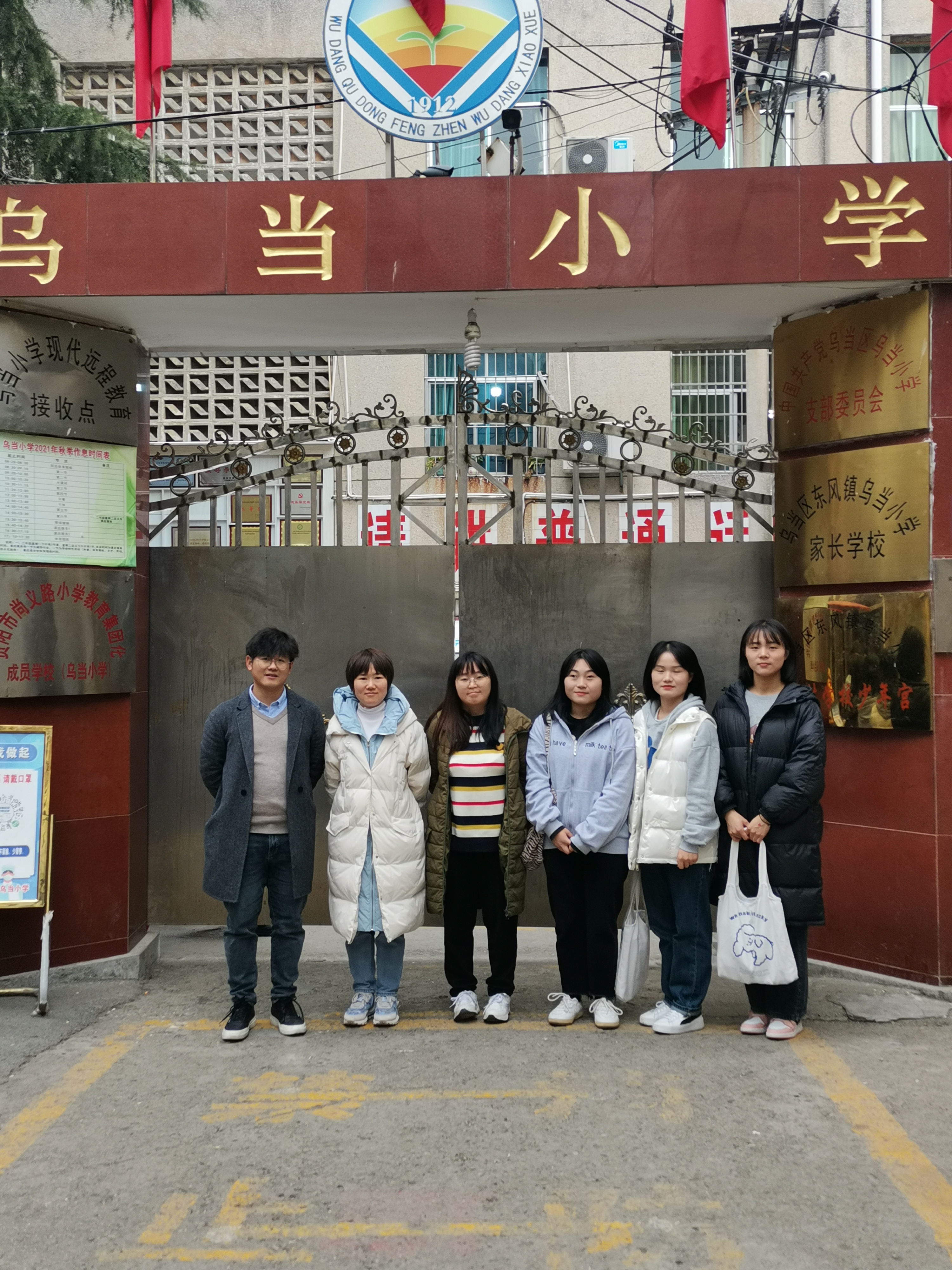 倪磊老师及实习生等在乌当小学校门口合影