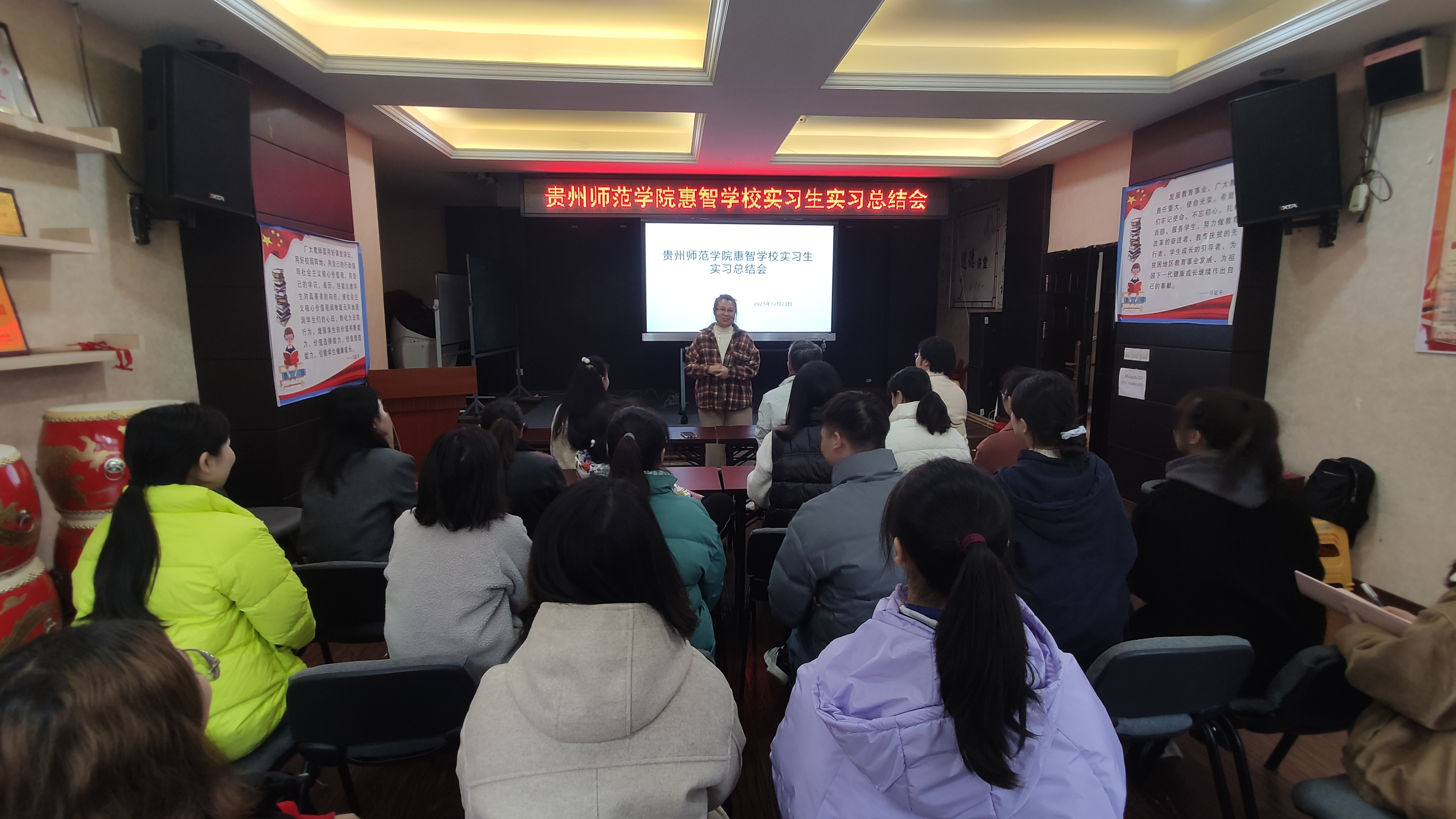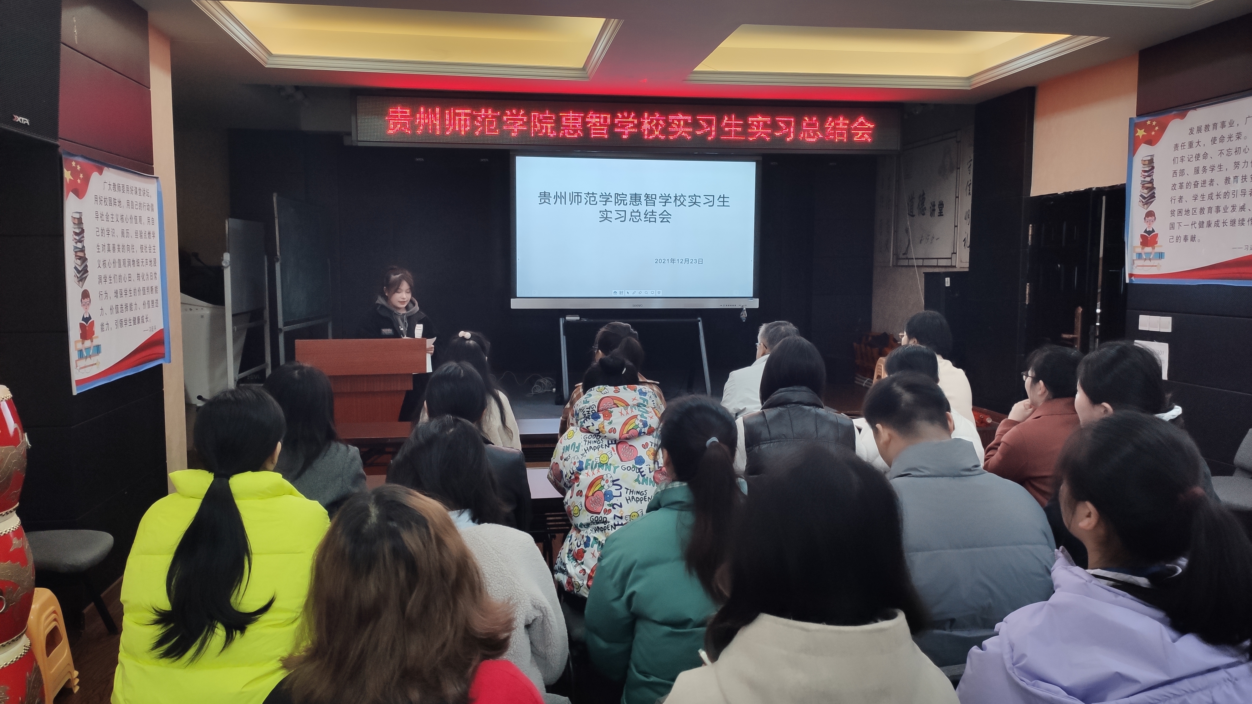 最后,夏卉芳副教授发言感谢云岩区惠智学校为我校实习生提供实习平台,感谢惠智学校的实习指导老师们在备课、授课、班级管理等各方面对实习生的指导关心,并要求今后我们的实习生要继续提高自己教育教学能力,关心爱护特殊儿童,做一名优秀的教师!
