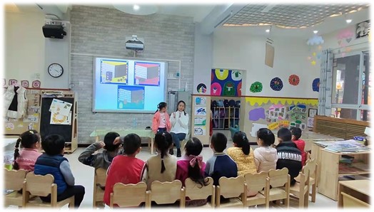 2021年12月16日下午,实习老师习纺组织大班语言活动《跑跑镇》,在连贯讲述,大胆表达的情境中体验语言游戏的快乐。以视频《跑步》导入,激起幼儿探究的兴趣,让幼儿在了解绘本内容的基础上,能够理解绘本中一种物体与另一种物体相遇会碰出一种新的物体,并且能够根据自己拿到的卡片大胆想象然后完整的说出谁和谁跑跑跑、碰碰碰,碰在一起变成了什么。活动过程中,幼儿很感兴趣,对碰撞出的结果很好奇。游戏过程中也充分发挥自己的想象,然后用固定句式完整的说出碰撞的结果。本次活动由李忻潞老师带着实习老师进行观摩并在活动结束后进行评课。评课分三个步骤进行,首先是由习纺老师自评说明本次活动的设计意图,要达到的目标以及课后的感受和反思。然后由实习老师进行点评说明本次活动的闪光点及给到的建议。最后李老师进行点评、总结本次活动,建议是多注意细节部分,比如语速不能太快,因为语言活动不仅侧重在说还有倾听的部分,语速太快不利于小朋友去倾听;在游戏环节采取换卡片的方式让小朋友多玩几轮,增加幼儿说的机会;最后就是前面铺垫部分教师要说多一点固定句式,考虑幼儿的个体差异,照顾语言发展能力较弱的小朋友等等。