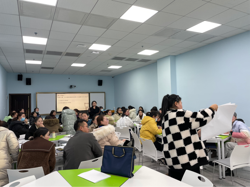 综合楼405教室开展参与式培训——《走进“游戏故事”》。此次培训对象为参与黔西市“强师工程”学前教育项目的100名幼儿园骨干教师。