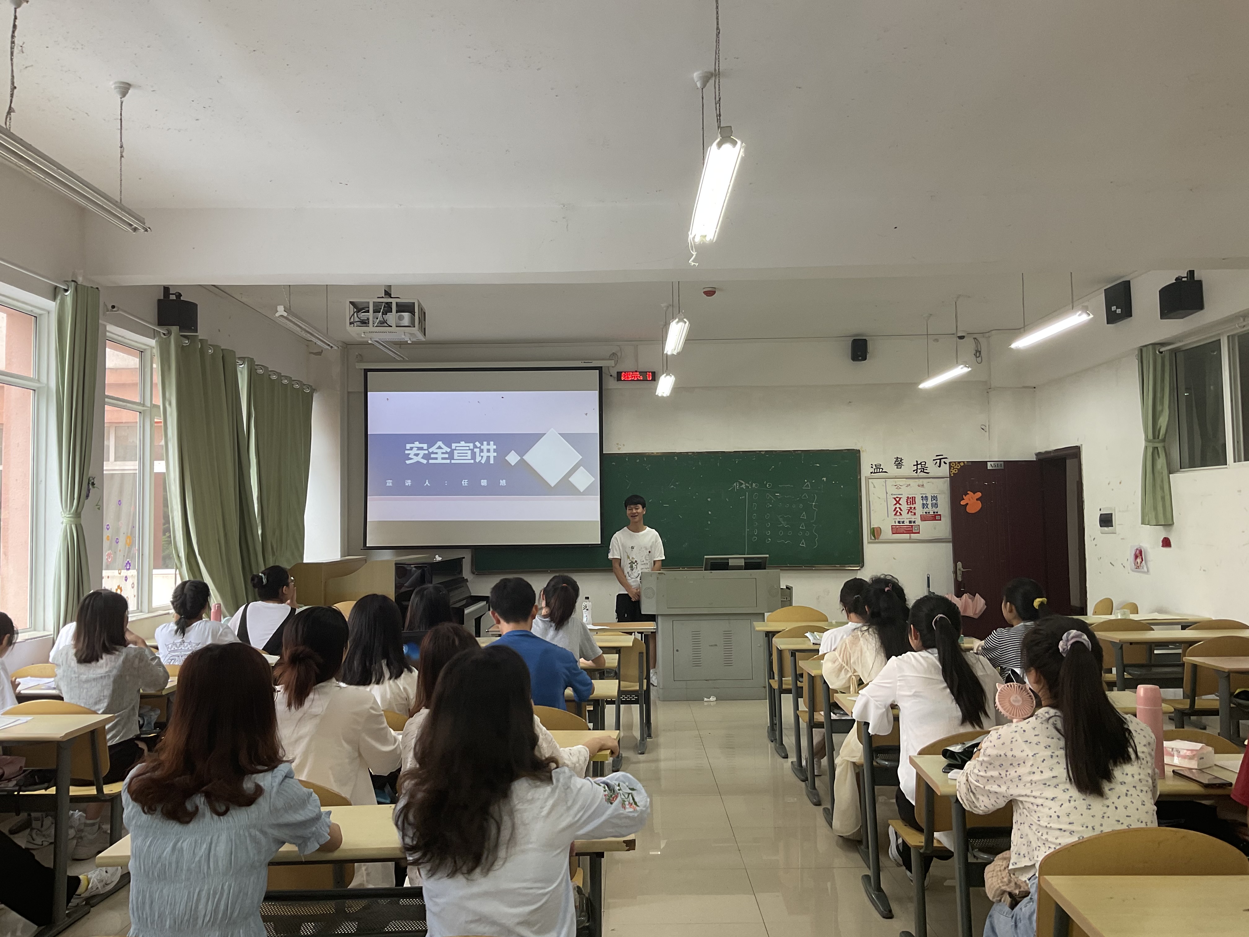 逸夫楼515教室开展了安全宣讲,宣讲人是教科院团委副书记任朝旭同学。