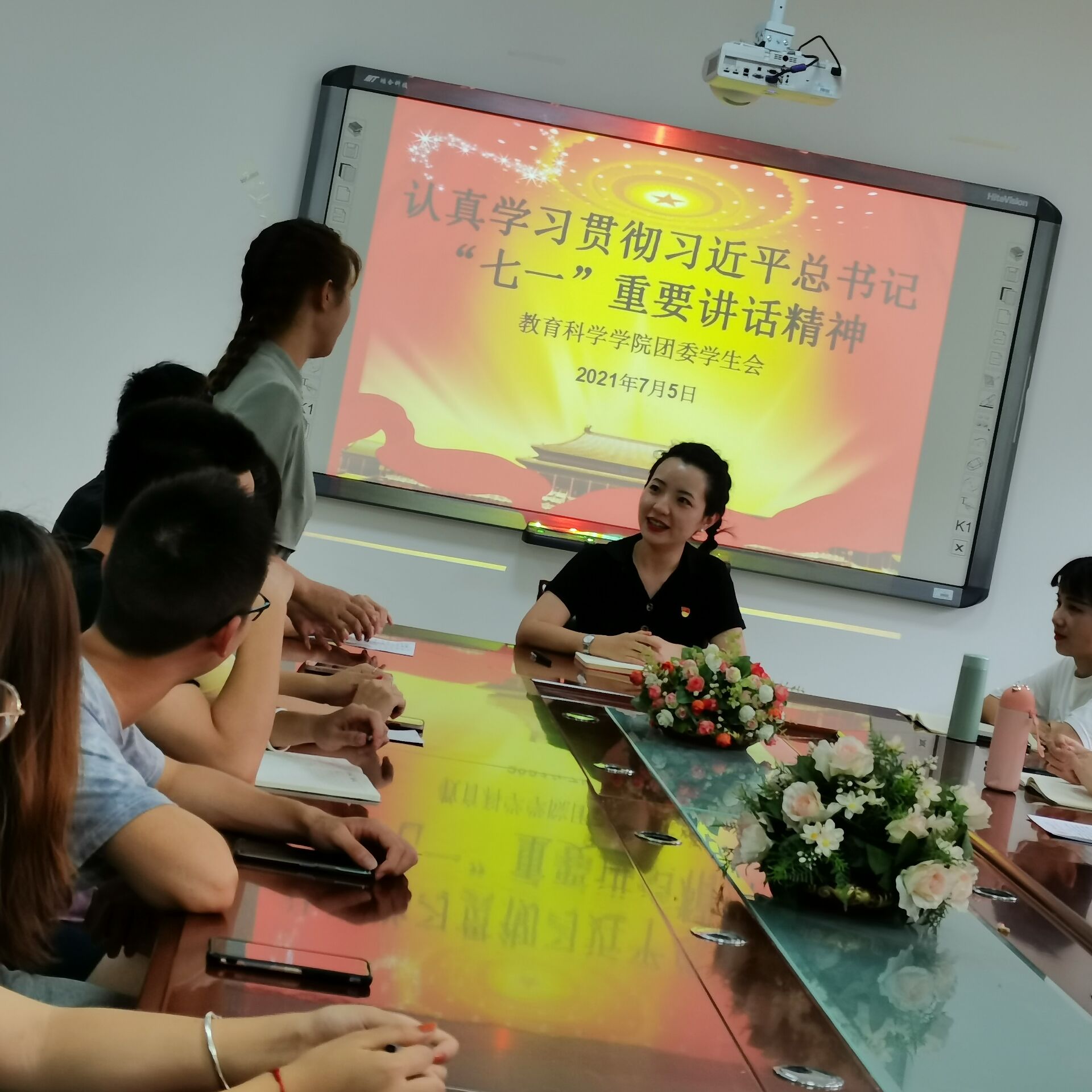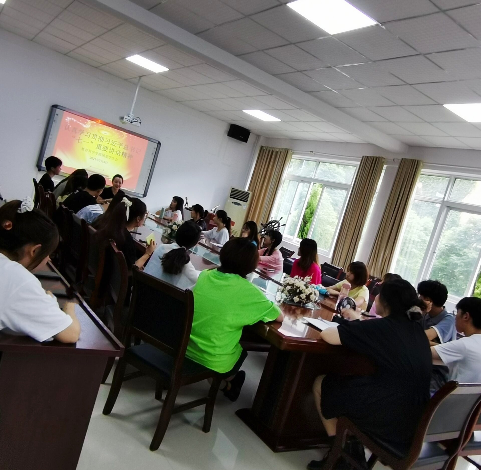 团委书记张源老师带领团委学生会全体成员在会议室召开会议,深入学习习近平总书记7月1日在庆祝中国共产党成立100周年大会上的重要讲话精神。