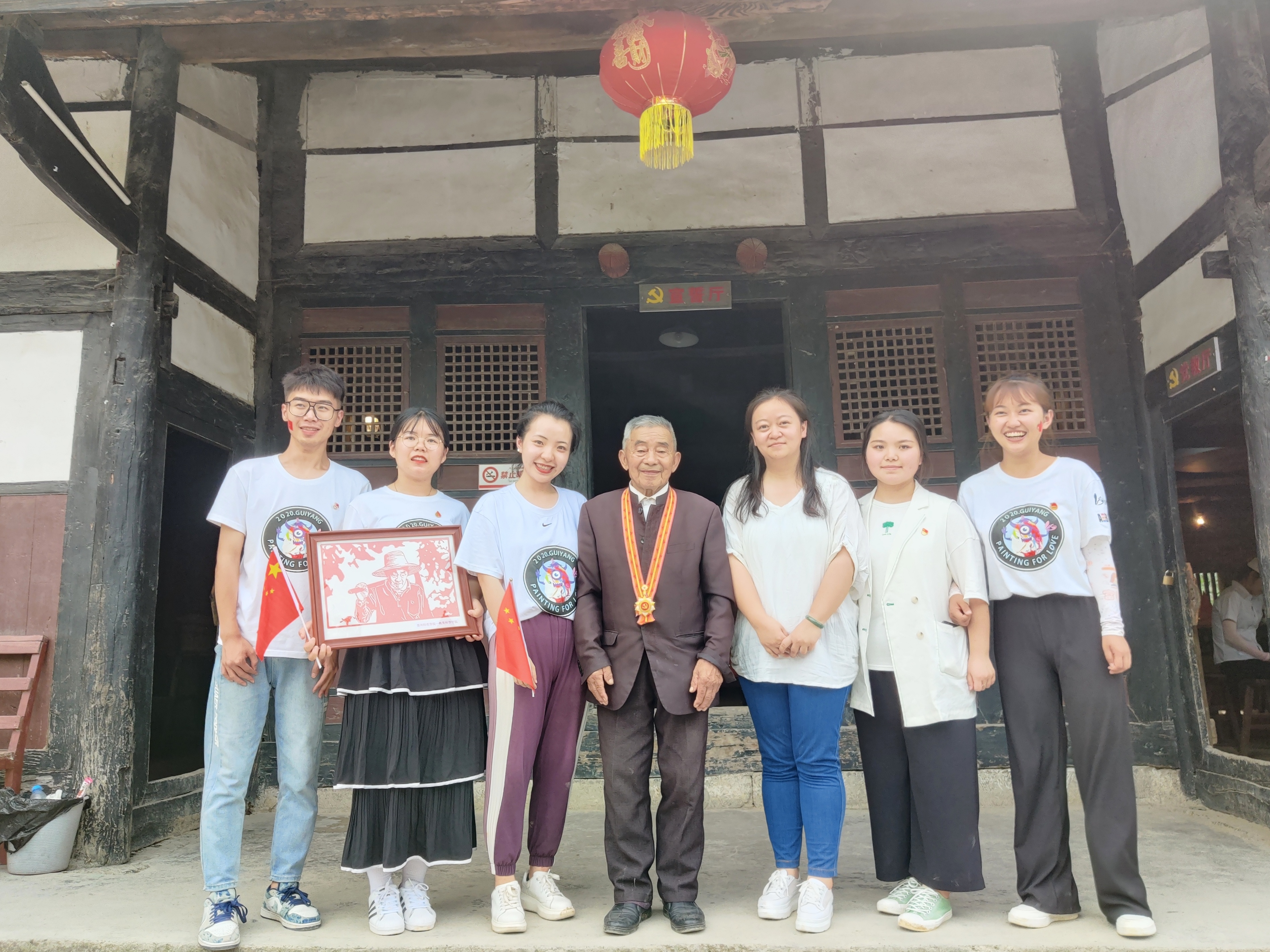 约·绘℃艺术公益社团童心绘梦团队代表及团委书记张源前往了七一勋章获得者黄大发老党员家中,开展了“峥嵘百年史,青春心向党”活动。