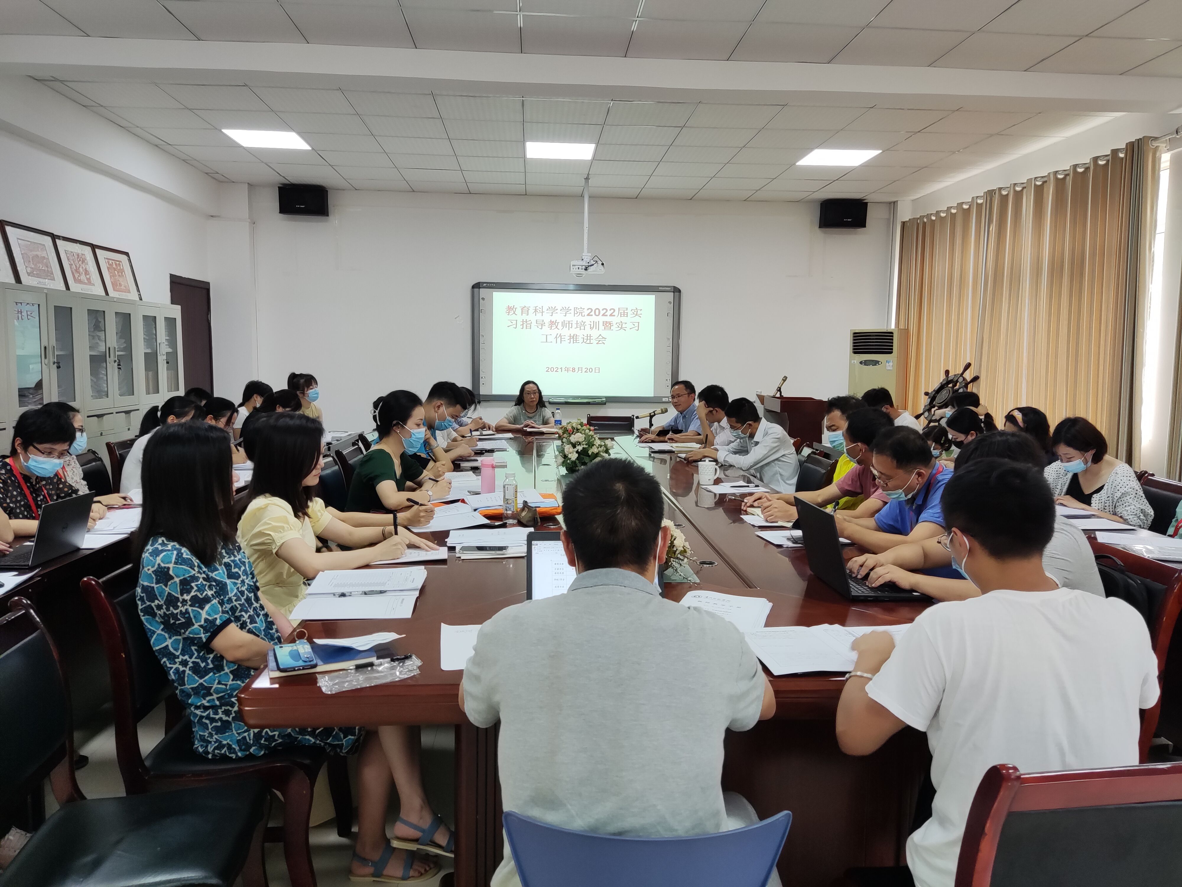 在逸夫楼321会议室召开了2022届实习指导教师培训暨实习工作推进会。院长刘红、党委副书记傅小芳、副院长黎平辉、副院长袁川以及全体2022届实习指导教师参加了此次会议。