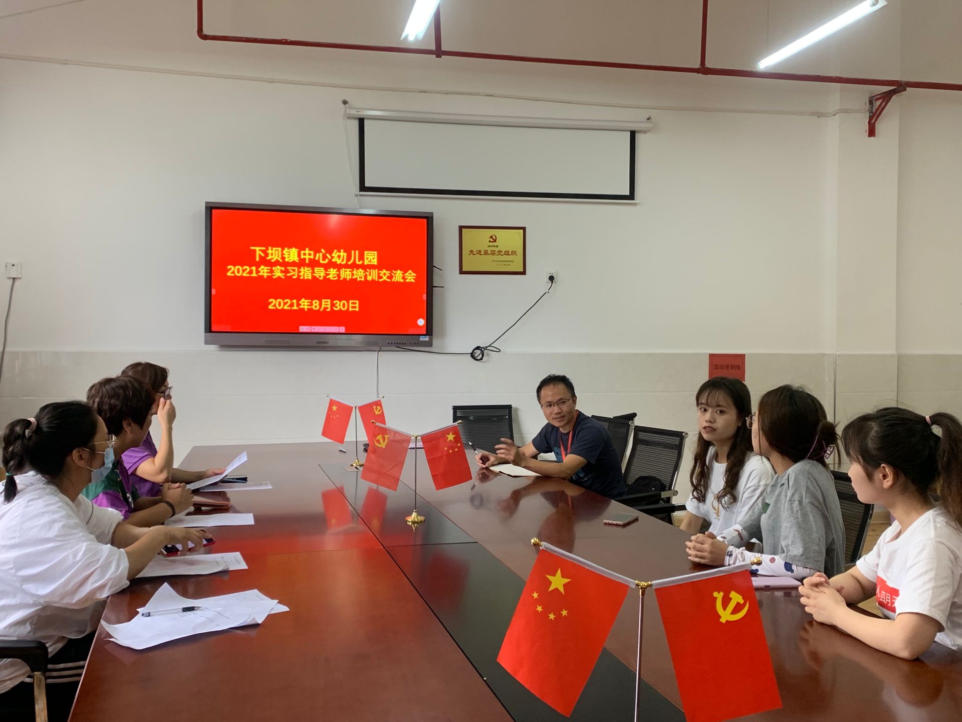 8月30日上午,我校学前教育专业实习基地——下坝镇中心幼儿园召开2021年实习生岗前培训暨实习指导教师培训交流会,下坝镇中心幼儿园贾忠琴园长、徐永艳园长、郭雪老师、吴完春老师、动漫花园