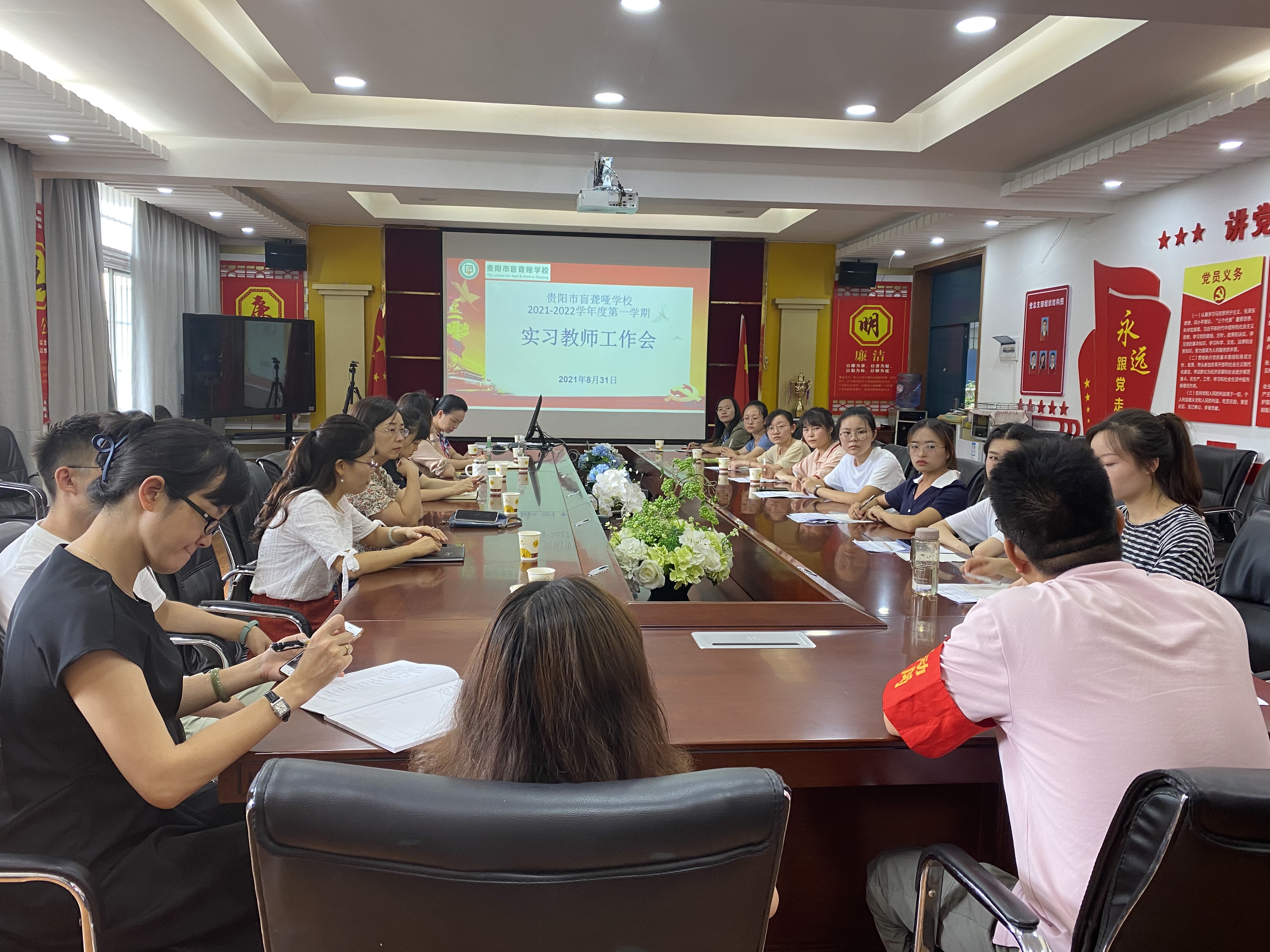 贵阳市盲聋哑学校2021-2022年度第一学期“实习教师工作会”在早上10:00如期开展。参加会议的成员有贵阳市盲聋哑学校的各部门负责人、学科指导教师、班主任指导教师、实习学生以及动漫花园