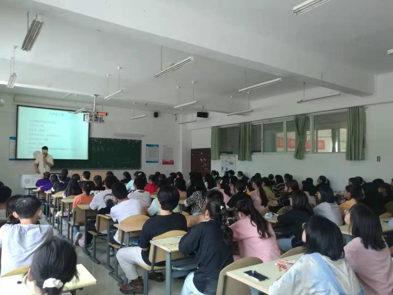 随后,他将大学与高中作了对比,强调大家一定要树立大学学习的目标,才会拥有一个丰富的大学生活。