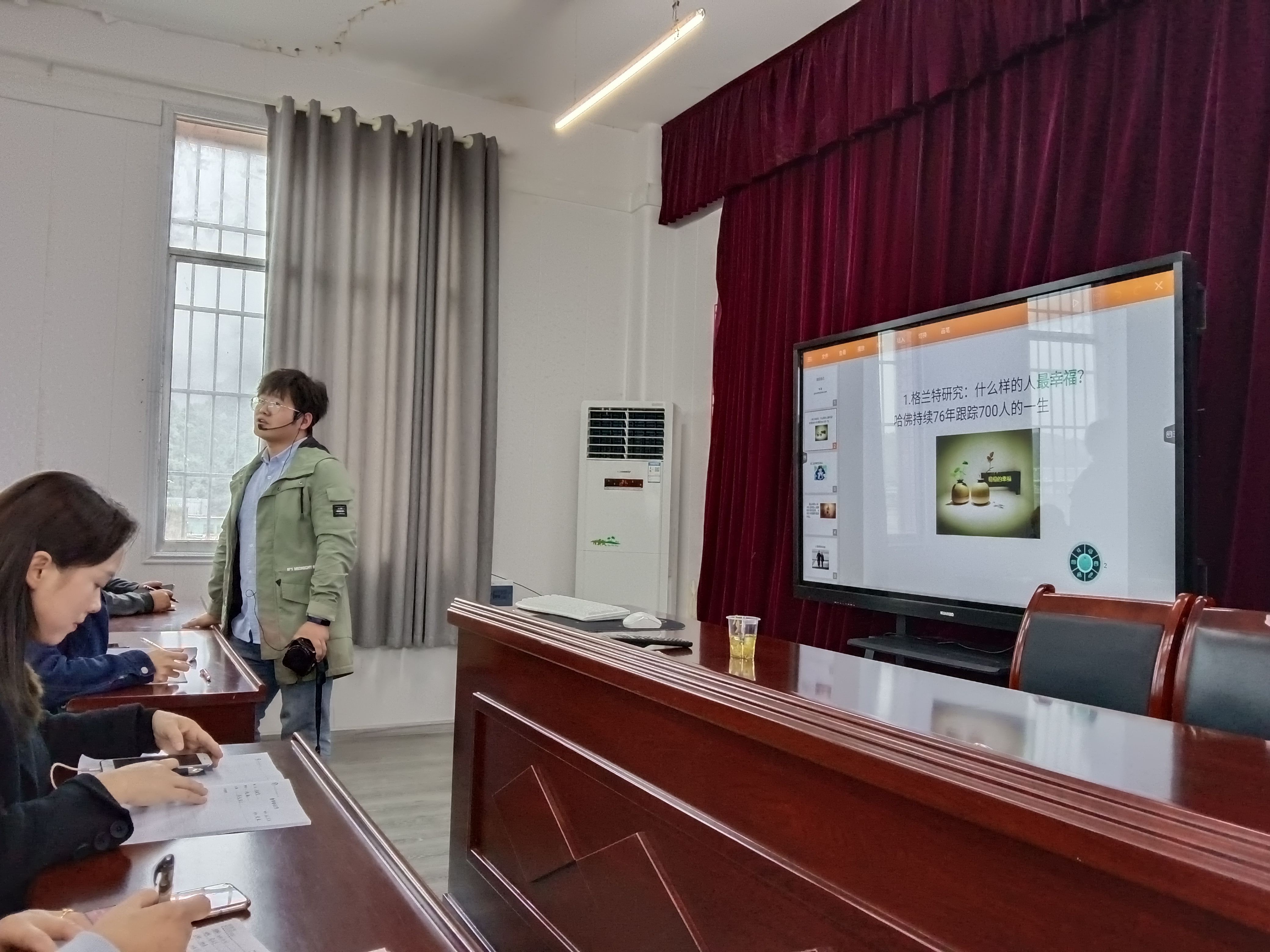 此次活动,倪磊为该校全体教师开展了教师压力应对心理讲座;讲座中,倪磊老师分享了心理学的一些最新研究,并且从人际互动论角度探讨了人际压力,最后倪磊做一个团体放松催眠。