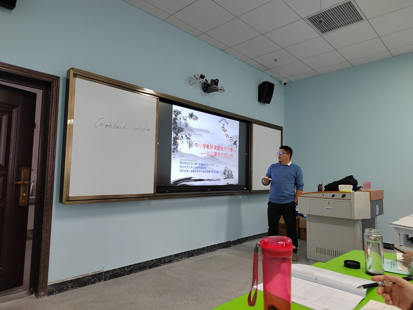 综合实训大楼504教室给各位学员开展有关中小学生心理健康评估的主题教学。陈教授从三个部分给大家进行讲解。第一部分是高中生心理评估:概述,测验的常模,测验的信度,测验的效度,项目分析,心理测验的使用;第二部分是对中小学教研课题技巧分析:巧寻IDEA,组合创新,搜集量表,资源共享;第三部分是抑郁及评估:抑郁情绪、抑郁状态、抑郁障碍,病因,治疗,预防,评估。