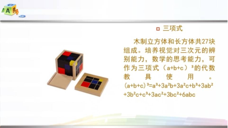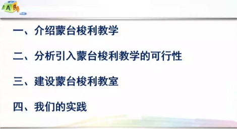 在讲座中,宋佩涵老师主要从以下几点来给学生们介绍蒙台梭利教学法在数学中的应用:一、介绍蒙台梭利教学 二、分析引入蒙台梭利教学的可行性 三、建设蒙台梭利教室 四、我们的实践情况。首先,在介绍蒙台梭利教学这点上,宋老师是以视频的方式介绍蒙台梭利及蒙台梭利教学的形成过程,针对的对象及蒙台梭利教学发明后人们对它的接受程度。其次,在第二点分析引入蒙台梭利教学的可行性上,宋老师主要讲解的是蒙台梭利教学在外国和我国的使用情况和使用特点等。再次,宋老师的讲座重点是第三、四点,在第三点里面,宋老师介绍蒙台梭利教具主要从以下四个方面进行介绍,1.感官教具的介绍 2.数学教学教具的介绍 3.语言、科学文化教育教具的介绍 4.日常生活教育教具的介绍。宋老师分别一一的介绍了蒙台梭利教具的用途和作用都有哪些,适合什么时候使用,适合什么课堂、什么内容和环境下使用等等方面介绍。第四点上,宋老师给我们介绍了蒙台梭利教学在我国的使用广度,以及我国对蒙台梭利教具在数学教学中的使用情况。在教学中,蒙台梭利教具可以用于“数的认识”、“数的理解”、“数的组成”、“数的运算”以及“计算数的多种运算”等等。宋老师给我们讲得很详细。