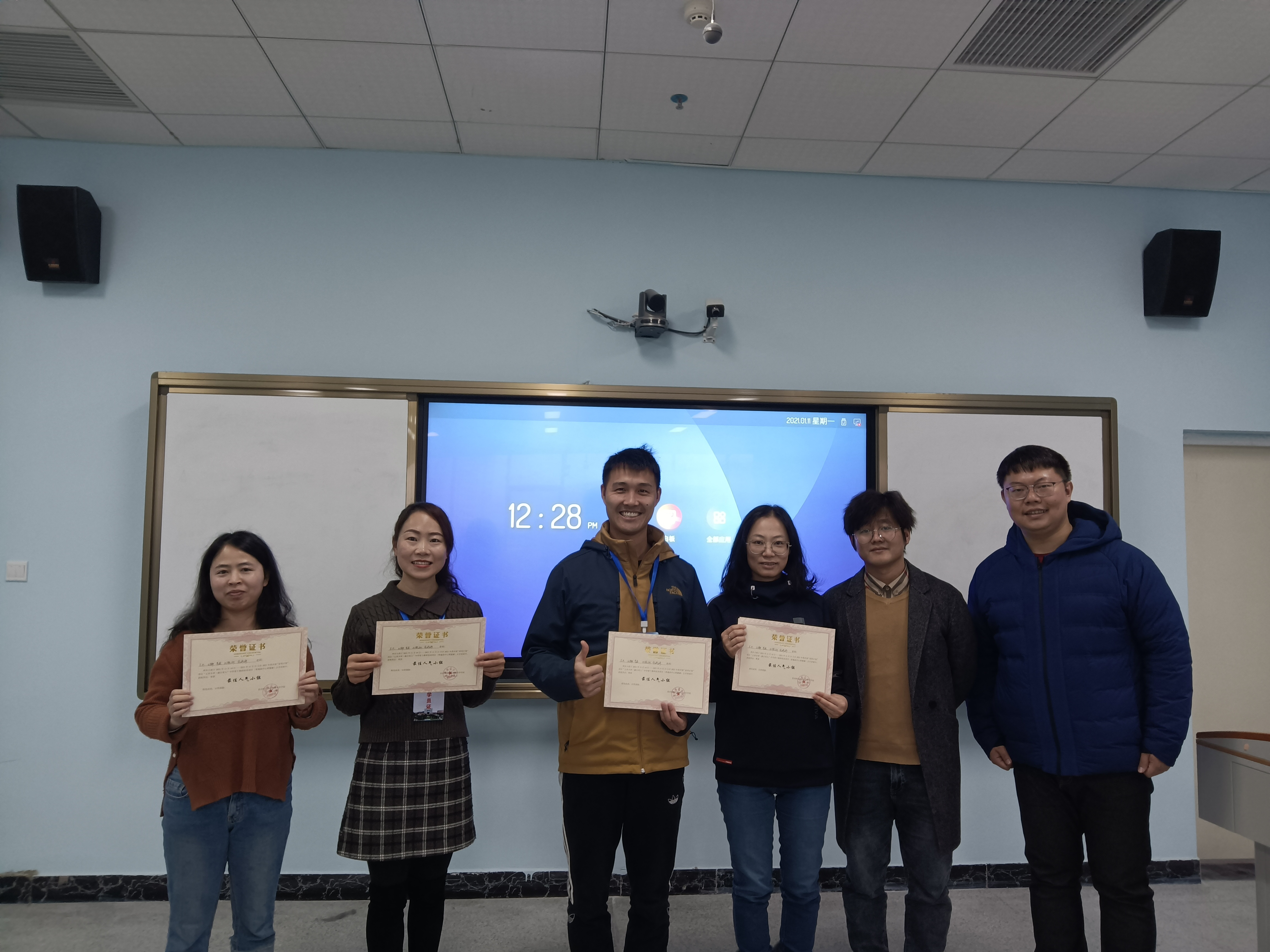 中学骨干教师培训项目的感激和对同窗之谊的不舍。随后,一个展现培训精彩点滴的视频在班里播放,每一帧画面都记录着这七天来培训的点滴。在观看完视频之后,学院领导颁发优秀学员、优秀小组等证书,各位老师脸上洋溢着开心的笑容。