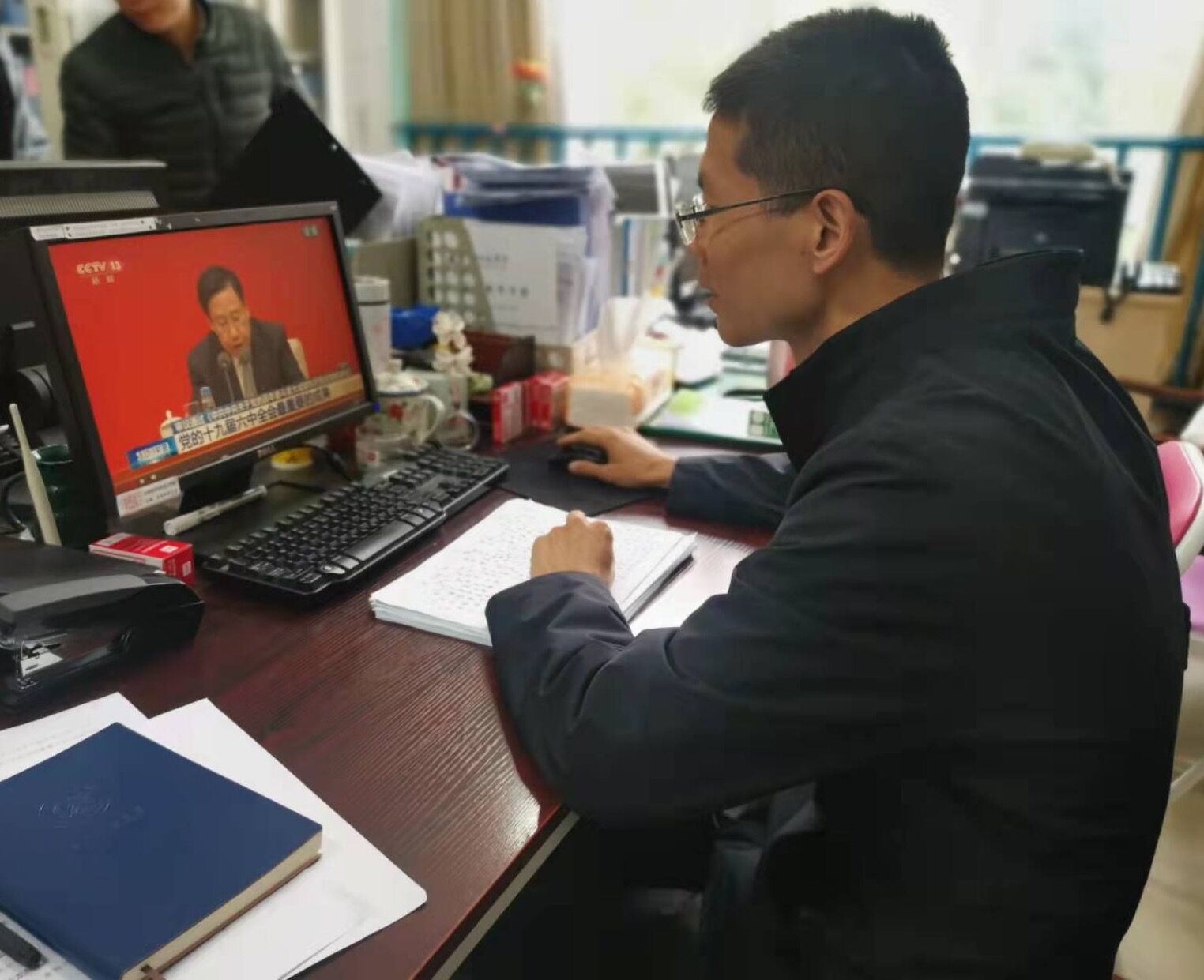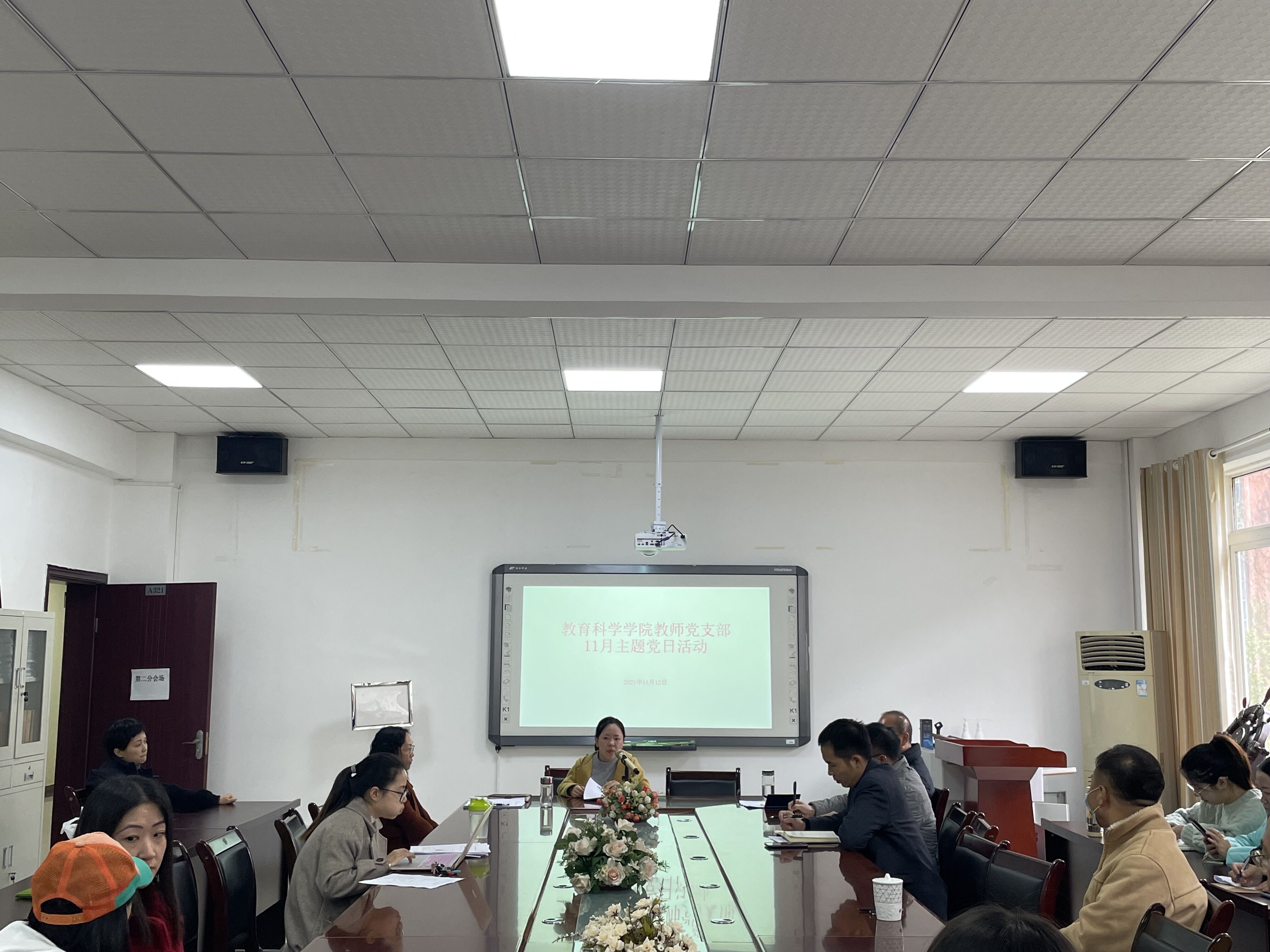 教师党支部在逸夫楼三楼会议室开展11月主题党日活动,学习十九届六中全会精神。会议由支部书记申苒主持,全体党员到场参加。
