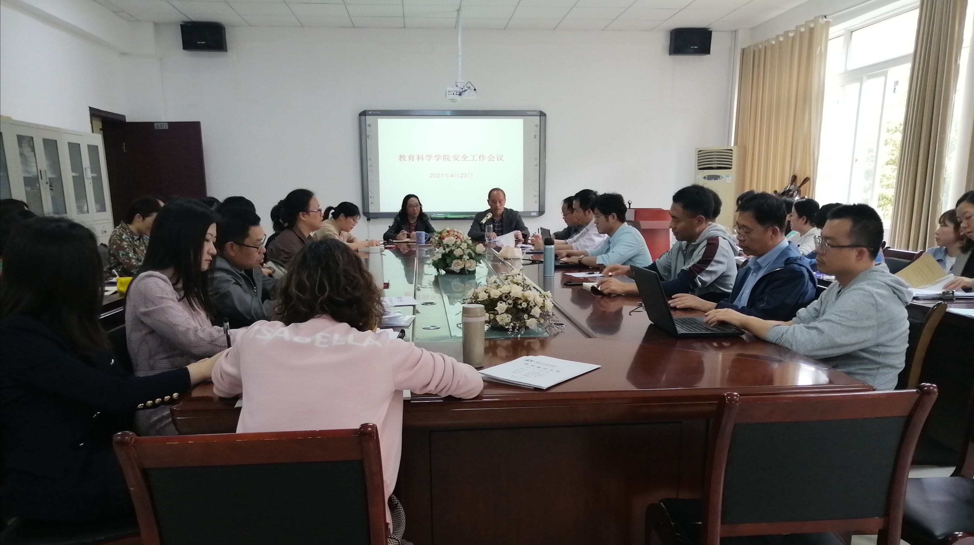 彭祥友首先通报近期学院安全稳定工作情况,就特殊教育系发生的安全隐患整改落实情况进行说明。之后,安排部署落实学院有关教学实习安全、学生管理安全、教师科研交流安全、学院网络安全、学院行政办公区域管理安全,以及学院意识形态管理等提出具体要求,落实学院安全责任制,党政同责、分管负责、人人有责。最后,要求全体教师要高度重视安全稳定工作,把学生的生命健康放在第一位,在五一节假日即将到来之际,认真开展隐患排查,开展安全教育,加强值班,担负责任,认真维护好校园安全稳定,做好学院人才培养各项工作。