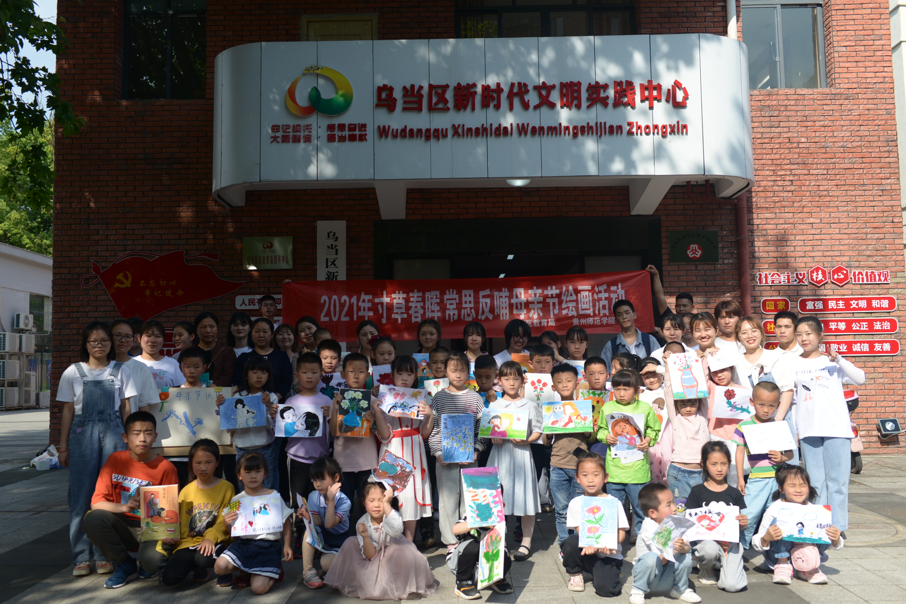 和乌当区教育局在贵阳市乌当区新时代文明实践中心联合举办了母亲节绘画活动,团委学生会、约·绘摄氏度成员以及30余组亲子家庭参与此次绘画活动,共度母亲节。