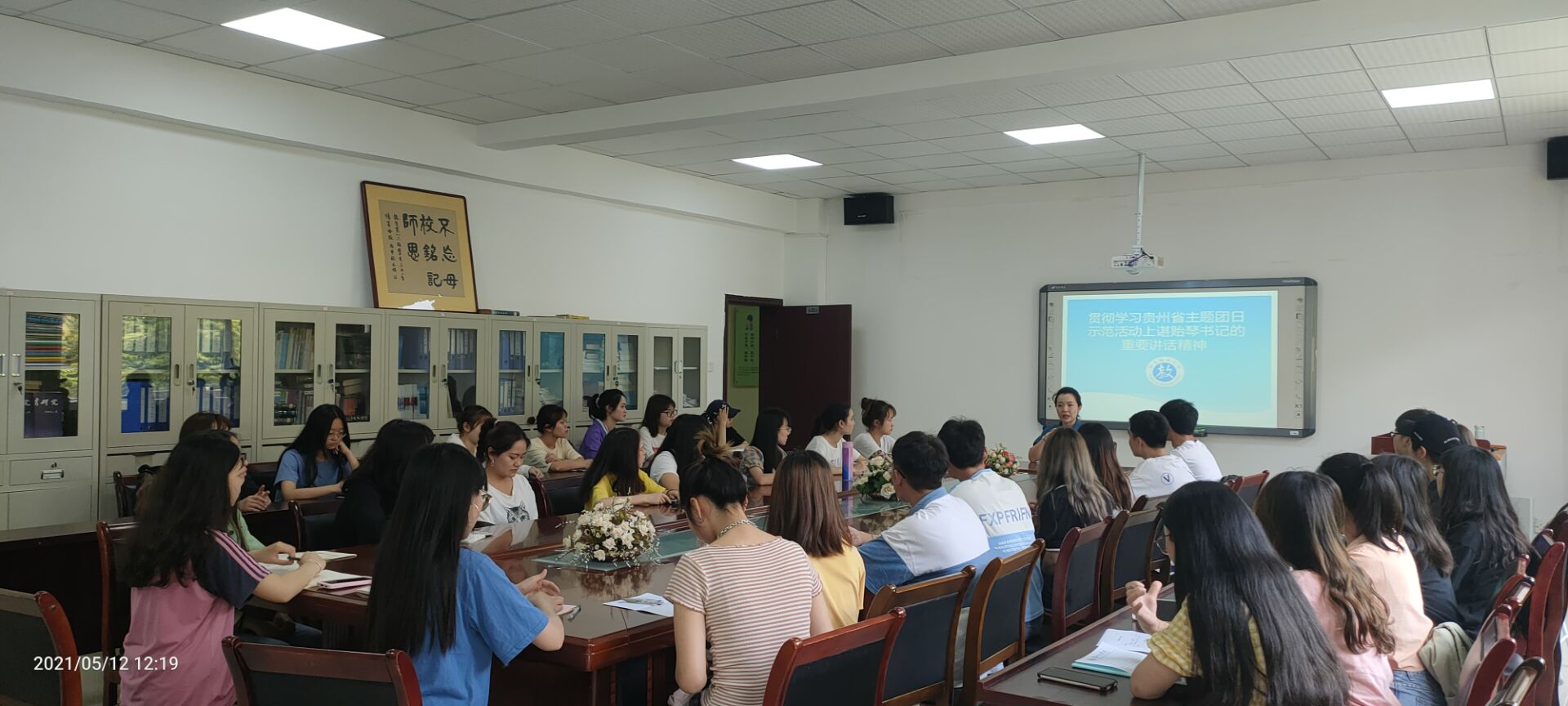 会上,张源分享了谌贻琴书记在贵州大学的贵州省共青团主题团日示范活动内容,作为全国五四红旗团委代表参加此次活动,谌贻琴书记和青年学子们一起回顾我们党、我们国家辉煌历程、一起重温习近平总书记对贵州的关心关怀。她寄语全省广大青年,要牢记习近平总书记殷切嘱托,仰望星空立大志,止于至善明大德,博学笃行成大才,脚踏实地担大任,为中华民族伟大复兴奉献青春力量,在开创多彩贵州新未来中实现人生出彩。