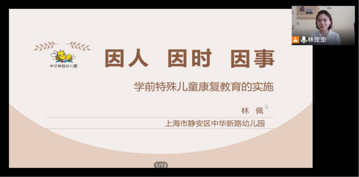 特殊教育系特别邀请了上海市静安区中华新路幼儿园教师林佩在线上进行了关于“因人 因时因事--学前特殊儿童康复教育的实施”的专题讲座。本次讲座由特殊教育系老师安文军主持,2018级、2019级全体学生参与。