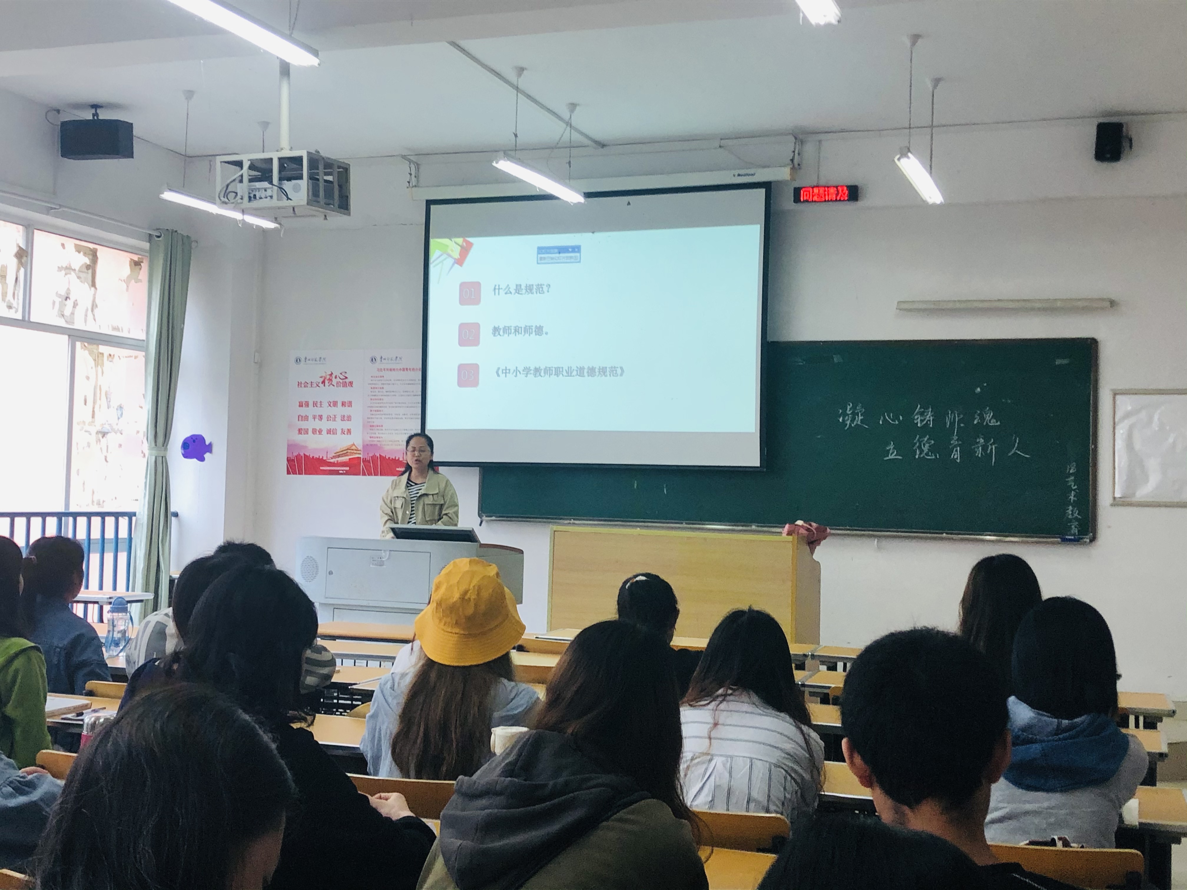 艺术教育系在逸夫楼504教室开展“凝心铸师魂,立德育新人”的专题讲座。出席本次专题讲座的有贵阳市云岩区第四实验小学副教导主任陈舸、动漫花园