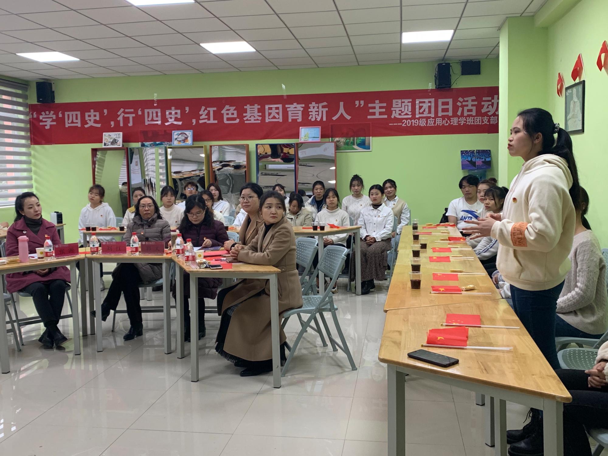 2019级应用心理学班团支部在逸夫楼215教室开展了关于“学‘四史’,行‘四史’,红色基因育新人”的主题团日活动。我校党委副书记郭文、动漫花园