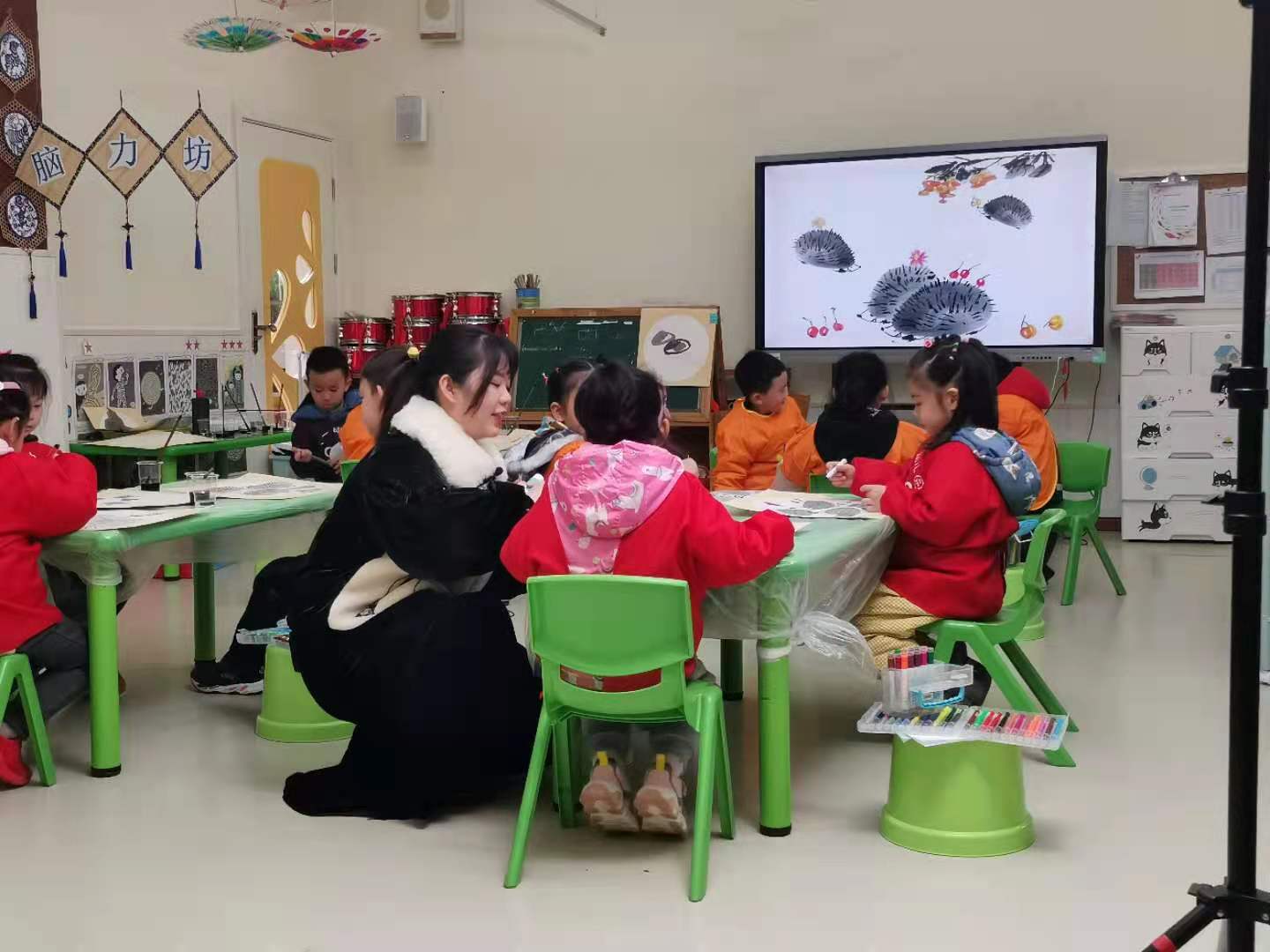 王雯颖老师一起观摩了来自贵阳幼儿师范高等专科学校青年教师陆露老师的美术活动,此次活动是“同课异构”教学研讨下的成果展示。首先观摩的是《可爱小刺猬》美术活动,在大四班进行,在教学过程中陆露老师通过分部位猜动物的游戏方式让幼儿对小刺猬的基本结构有明确的认识;引导幼儿知道如何利用淡墨与黑色水彩笔绘画小刺猬,对范画进行讲解并指导幼儿作画,培养幼儿表现美与创造美的能力,并设置幼儿与同伴、教师分享环节,整个教学活动教学目标明确,思路清晰,课堂节奏、语言表达等方面得到在场的老师一致好评。