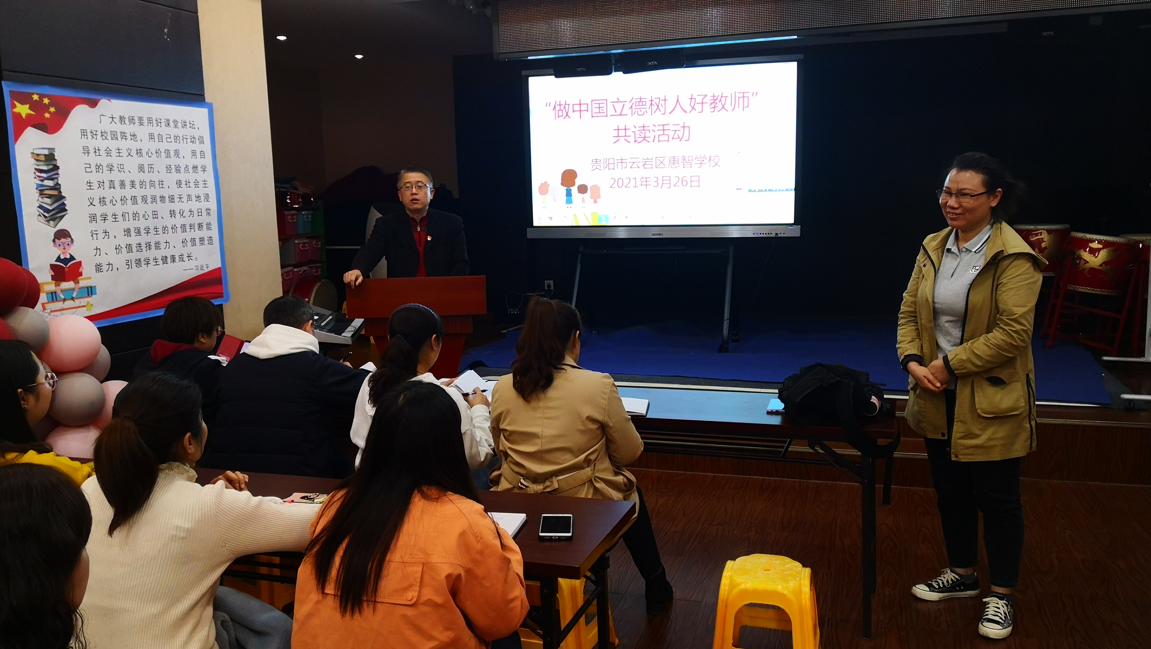2021年3月26日上午,夏卉芳先参加贵阳市云岩区惠智学校全校教职工大会及“做中国立德树人好老师”共读活动。