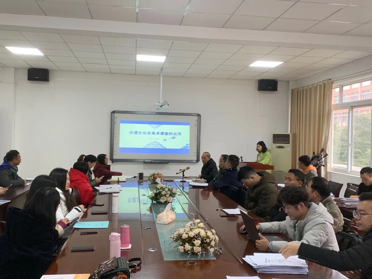 首先,龙雪梅老师针对非遗文化在美术课堂的应用进行了分享。在分享中,龙雪梅老师结合“文化自信”这一理念,对其具有专业特色的课程开展方式进行了介绍,并详细阐述了其对课程思政的理解以及对今后课程思政开展的展望。