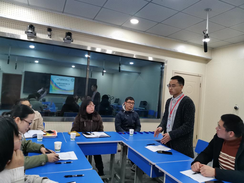 的三位指导教师分别讲话。老师们先对盲聋哑学校开展独特的双指导教师实习生培养制度表示由衷的赞赏,认为这既让实习生得到细致的教学技能指导,也得到班级管理能力的培养,进而获得综合素养的整体提升。此外,还感谢盲聋哑学校的各项用心安排和学校领导对实习工作的关心支持以及指导教师对实习生的悉心指导,同时也提出希望增强高校与一线学校的联系,可以加强两个学校在送教上门、课题研究、学生见习等方面的深度交流与合作,共同做好特教、提升特教、培养特教人。
