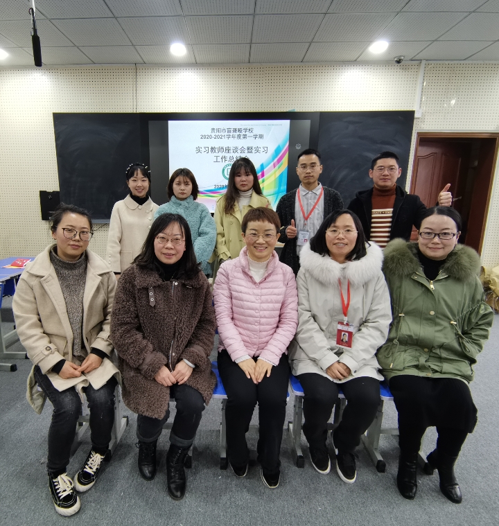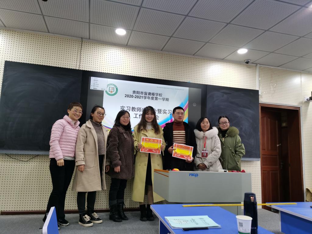 最后,郭绪英做会议总结讲话。她首先祝贺五位实习教师顺利完成了实习工作,其次感谢各位实习教师对学校的信任和认可而选择到贵阳市盲聋哑学校实习;并希望各位实习教师能将实习中学到的东西应用于今后的学习和工作中,守住初心,做一个有温度的特教人。她还为本学期的优秀实习生进行颁奖,然后会议在大家愉快的合影留念中走进尾声。