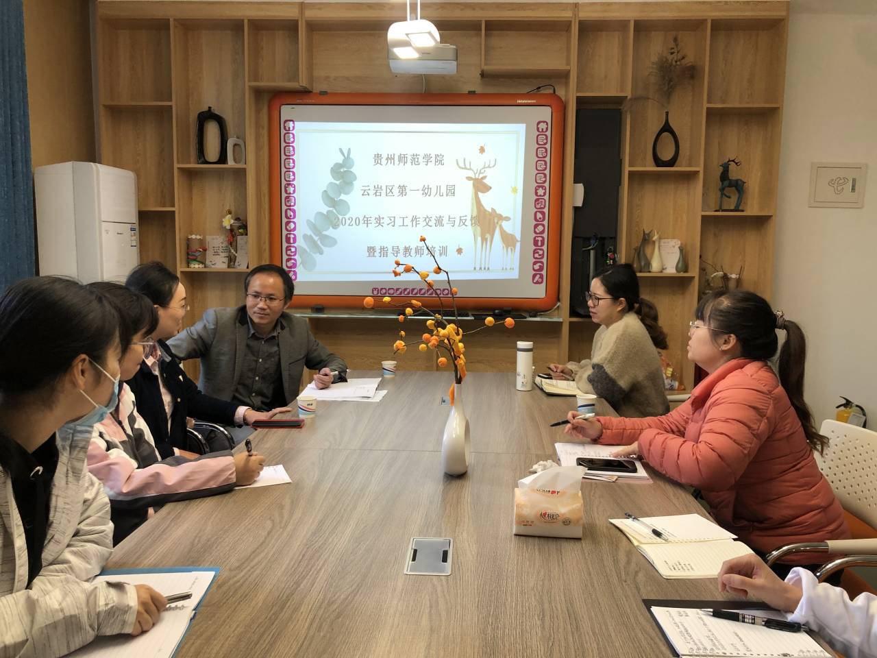 副院长黎平辉、李姿雨老师和科研助理吴桂桃于2020年10月23日赴云岩区第一幼儿园看望实习生,并出席实习单位指导教师培训会。