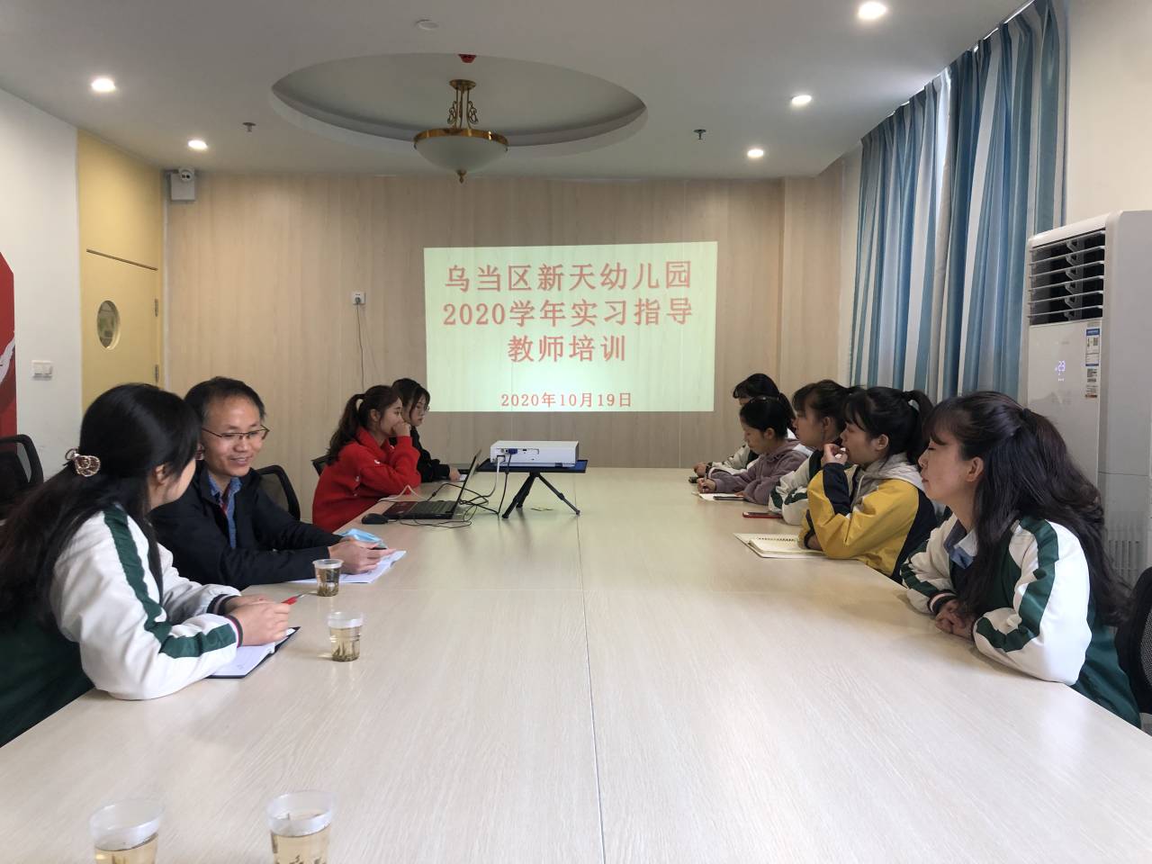 副院长黎平辉和科研助理吴桂桃于2020年10月19日到高新幼儿园看望实习生,并出席乌当区新天幼儿园实习指导教师培训座谈会。