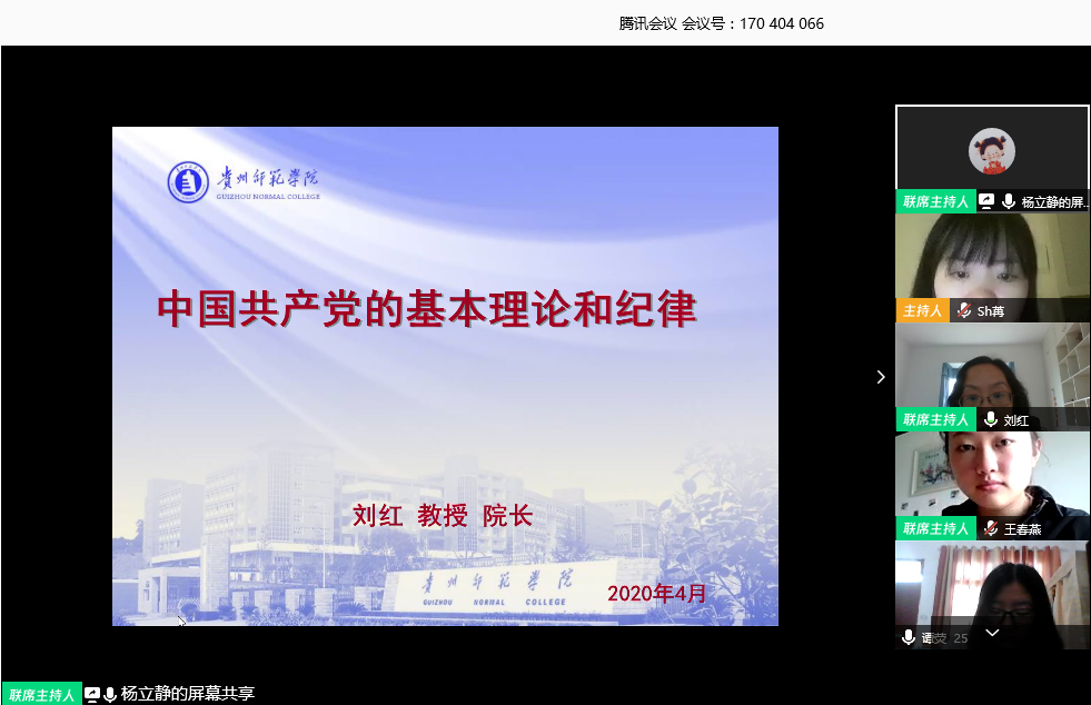 讲座中,刘红以中国共产党在大家心目中的形象感受为问题线索,抛砖引玉的引导学员去认识党的领导作用;尤其是近期新冠肺炎的爆发,对比国内外防控形势,更是极大地彰显了我党的英明领导,进一步加深大家对党的认识和了解;接着,刘红围绕中国共产党的性质、最高理想、根本宗旨等方面进行了详细地讲解;通过大量的例子阐明了党的指导思想、党的组织、党的纪律和党的作风,每一个知识点都与学员在线上积极的互动;最后,她对全体学员提出了要求,希望全体学员自觉学习党的先进理论知识;从一名入党积极分子的角度,尽力投身社会服务中,结合专业特色,自觉践行为人民服务的宗旨,从而提高自身思想觉悟和自我政治素养,从身边的小事做起,严格约束自己,不断完善和成长,争取早日加入党组织。