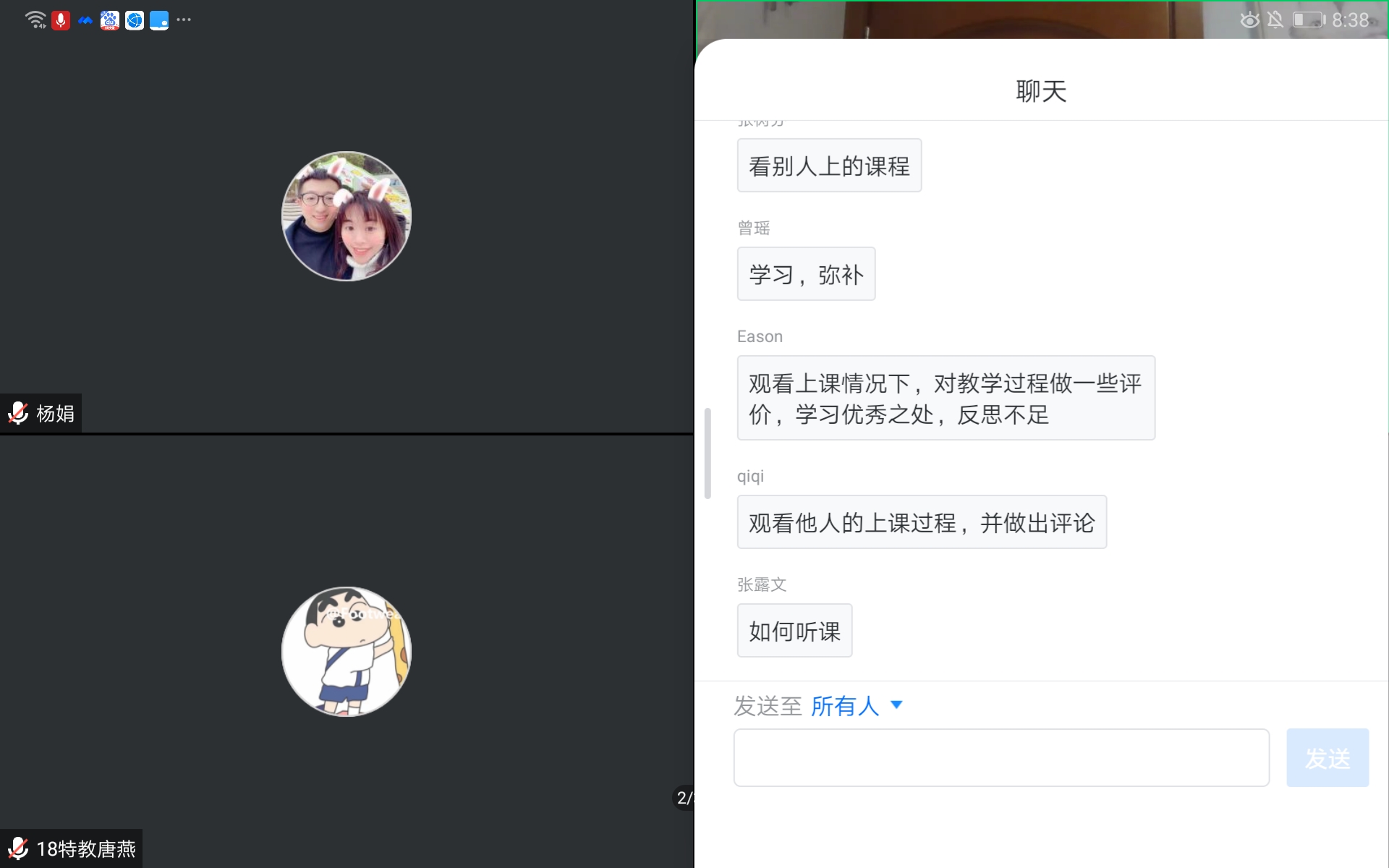 讲座过程中同学们通过文字与夏老师互动