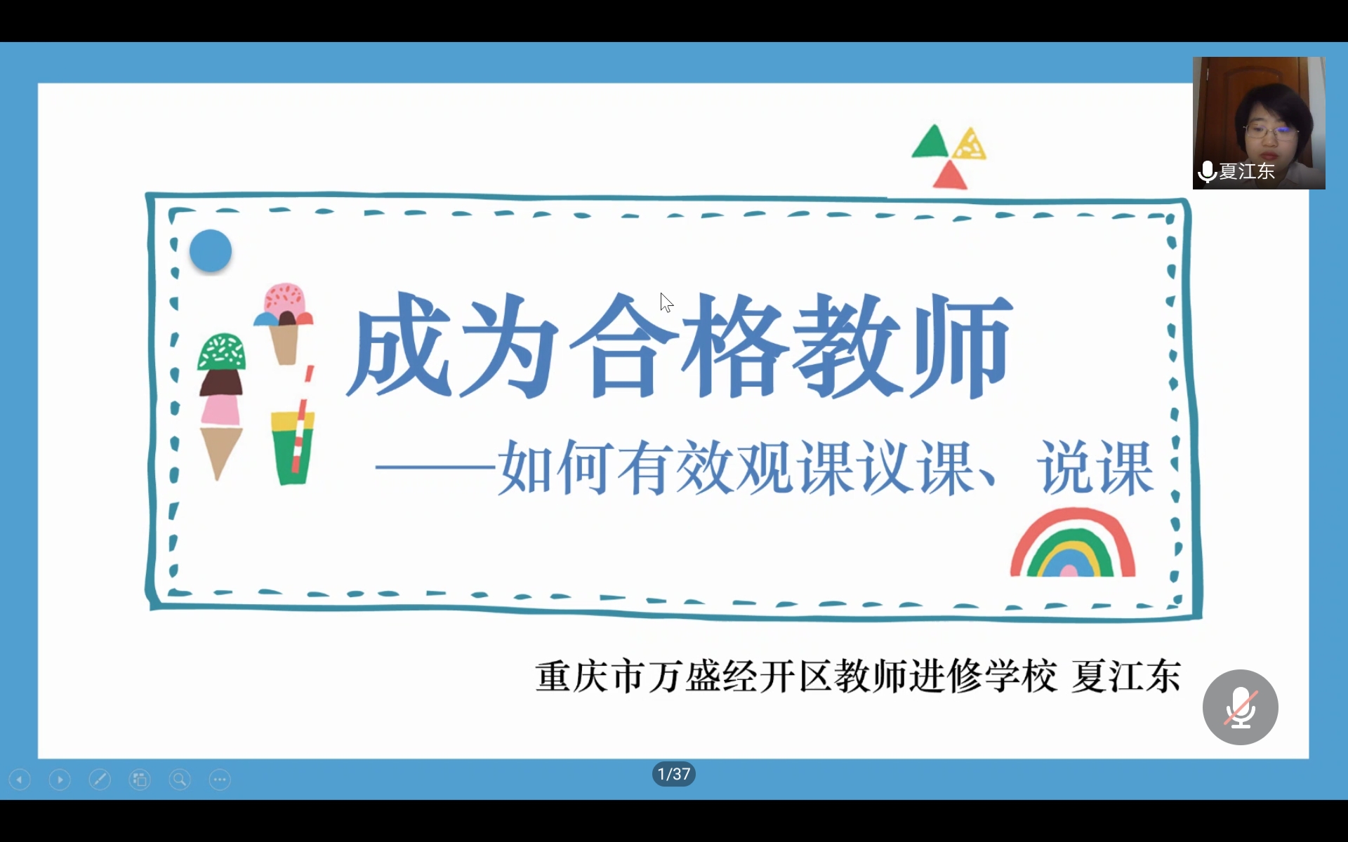 举办“成为合格教师——如何有效观课、议课”专题讲座。2020年5月25日上午8:30,重庆市万盛经开区教研员夏江东老师为我校特殊教育专业2017、2018级学生进行观课议课讲座。本次讲座通过腾讯会议开展,由特殊教育系主任杨娟主持。