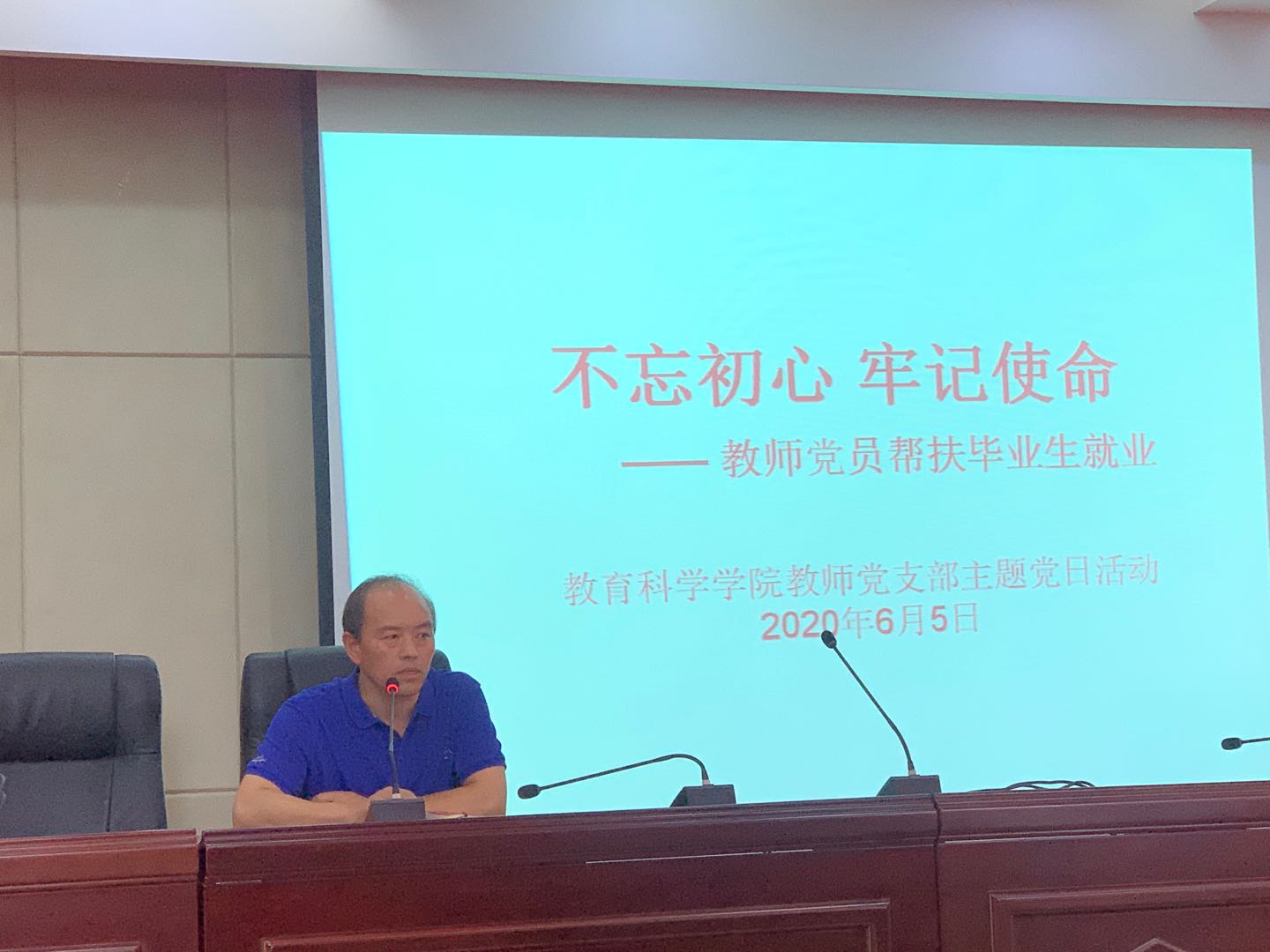 首先,学院党委书记彭祥友传达学习了全国两会精神,重点学习了习近平总书记在全国两会期间系列重要讲话精神,学习了李克强总理在十三届全国人大第三次会议上的《政府工作报告》,对集中精力抓好“六稳”、“六保”有进一步的认识,希望学院全体党员教师发挥模范带头作用,积极努力做好毕业生就业指导工作。这次理论学习让全体党员明白了作为一名教育工作者,应该振奋精神,担负起教育工作者应有的担当。随后,我院教师党员交流帮扶毕业生的就业工作,沈洁同志分享了作为辅导员所作的就业工作,她先后邀请了三位已毕业的学生给16级的心理学毕业生做了三次讲座;罗艳华同志也分享了自己通过QQ和电话的方式去了解学生的就业情况,并帮助他们分析就业形势;张鸿翼同志从及时传达就业创业的政策,实时分享就业信息以及时对学生进行就业指导三个方面分享了自己的就业工作,听完三位教师党员的讲述,教师党员表示要积极主动对接毕业生,帮助学生分析就业创业形势,调适学生择业心理,更加坚定了全体教师党员帮扶毕业生就业的决心。