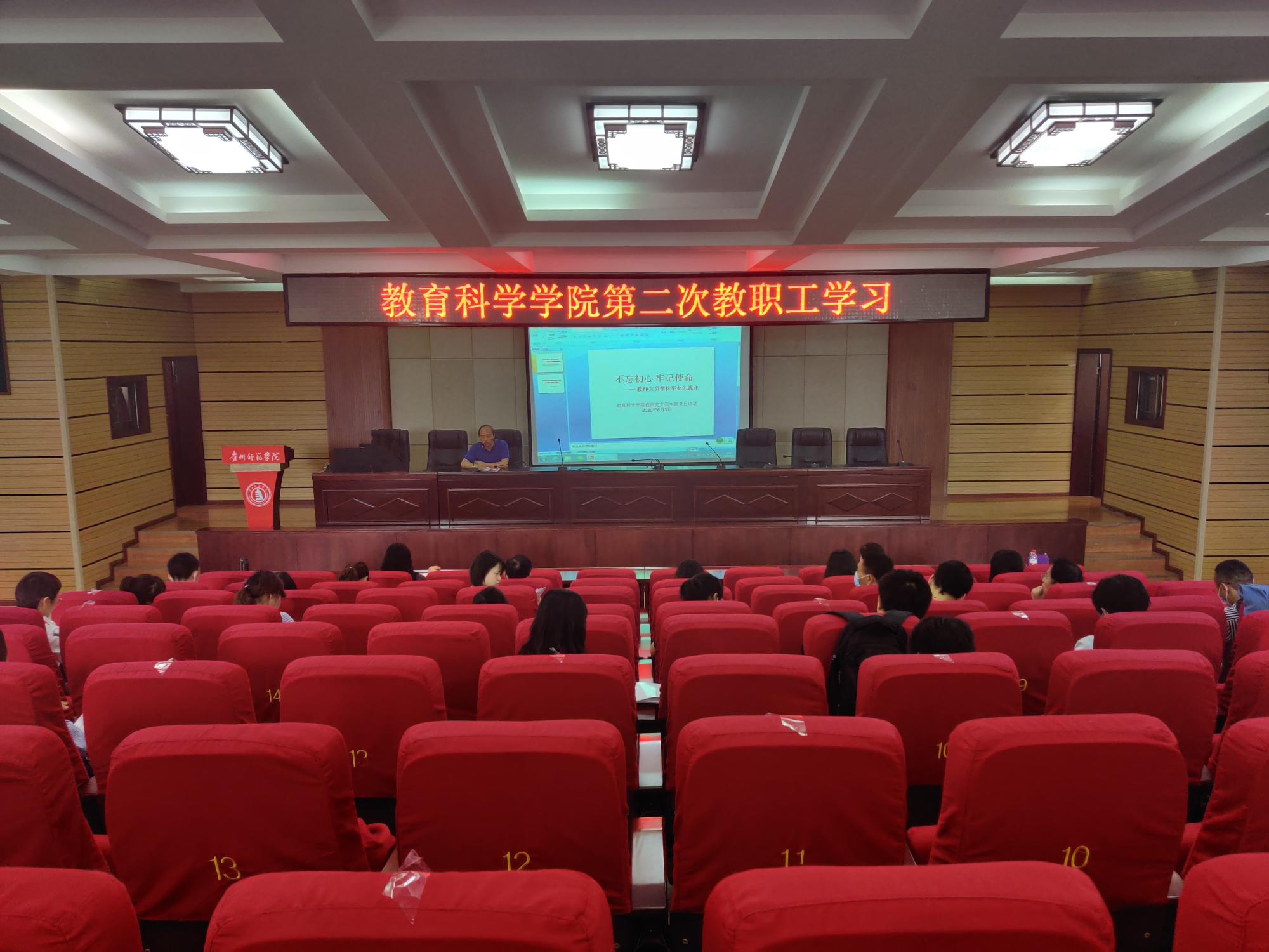 2020年教职工政治学习在文韬苑道德讲堂进行。院党委书记彭祥友、院长刘红、党委副书记傅小芳、副院长黎平辉和袁川,以及全体教职工到场参加。学习活动由彭祥友主持。