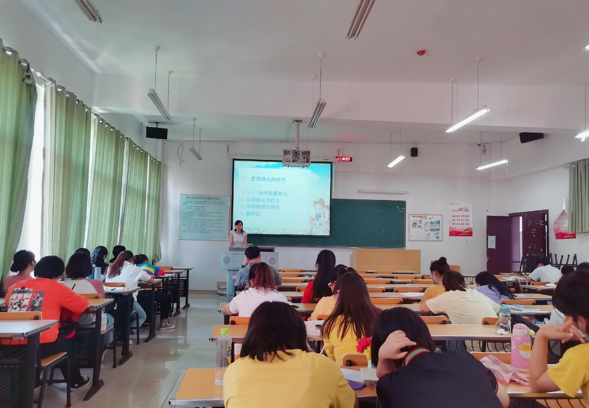 学前教育专业在逸夫楼A-601教室开展了实习工作指导培训讲座。此次讲座由贵阳市云岩区第三幼儿园园长何丹主讲, 17级学前教育学专业81名学生聆听了讲座。