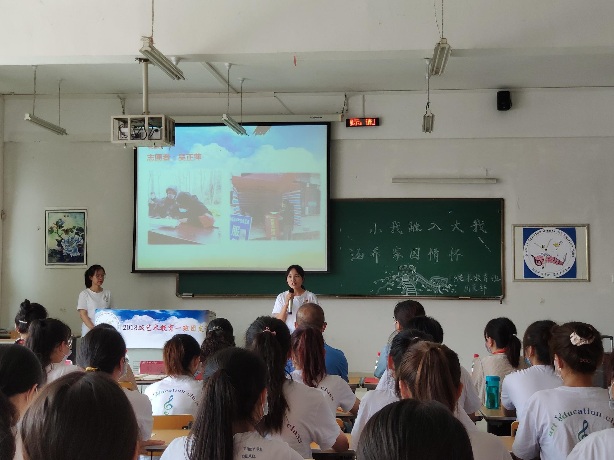 18级艺术教育班在逸夫楼504开展关于“绽放活力青春,‘艺’起战胜疫情”的主题团日活动。我校副校长郭文、动漫花园