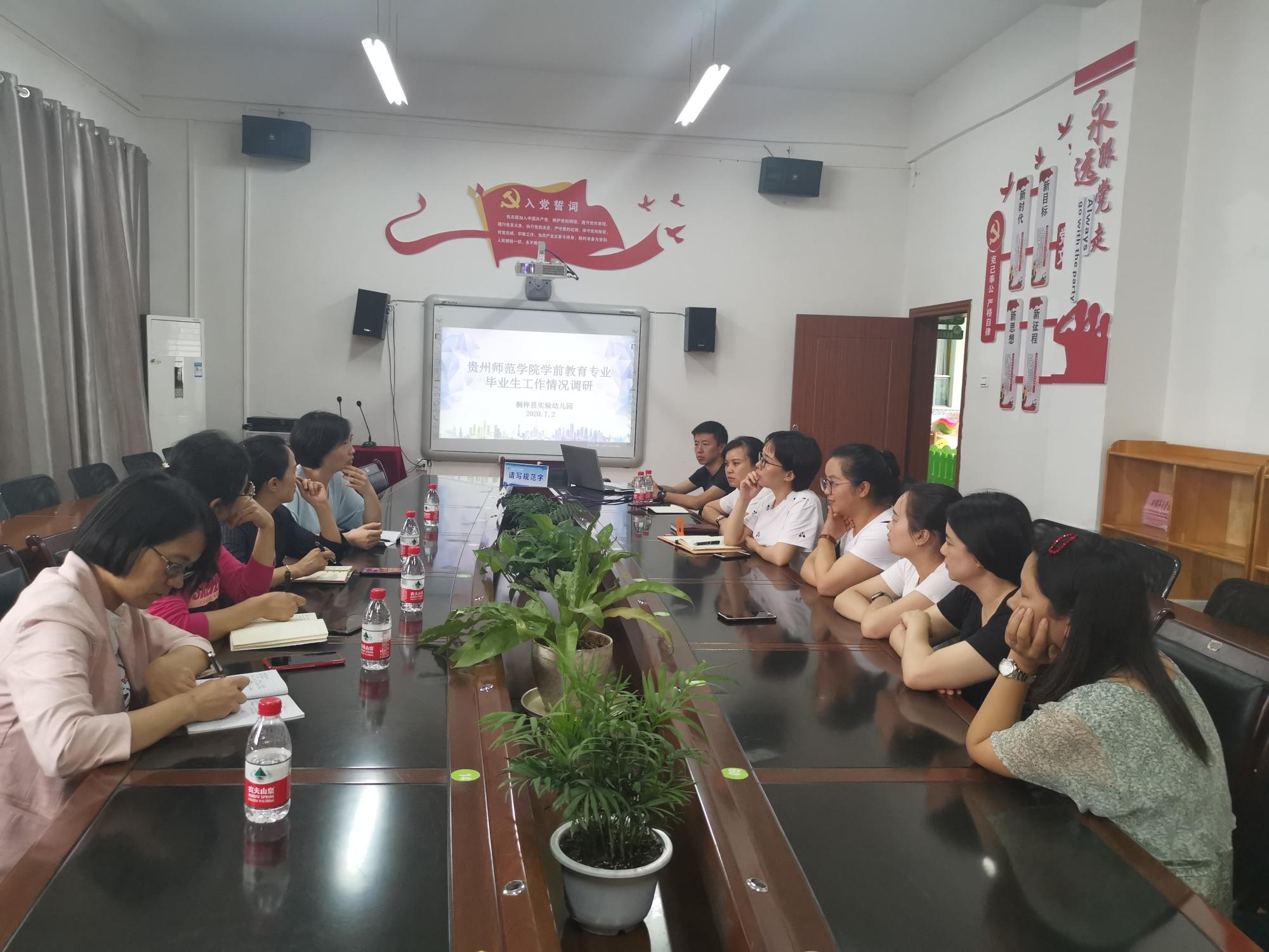 2020年7月2日上午8点30分,我院学前教育专业教师先赴桐梓县楚米镇中心幼儿园进行参观,了解了镇级幼儿园对学前教育专业人才的需求和学前教育发展状况;然后上午11点又赴桐梓县实验幼儿园进行调研座谈,调研座谈会议程包含以下三个方面:首先,桐梓县实验幼儿园付园长对我院学前教育专业毕业生及参与国培学员给予了高度的评价,肯定了他们在工作中的积极表现,也表明了对他们的工作期待,同时也提出对学前教育专业人才在实践能力、综合能力、课题研究能力方面的需求;其次,我院学前教育专业毕业生及培训学员对个人工作情况进行交流,表明了在校期间的课程对后期工作的积极作用,同时也提出建议,希望加强儿童心理和行为观察分析、专业技能、家园沟通、实践运用能力等方面的培养;最后,幼儿园家长委员会代表对我院学前教育专业学生工作进行交流,赞扬了我院毕业生在工作中对幼儿情绪情感态度的积极引导和家园共育方面做出的积极尝试和努力。