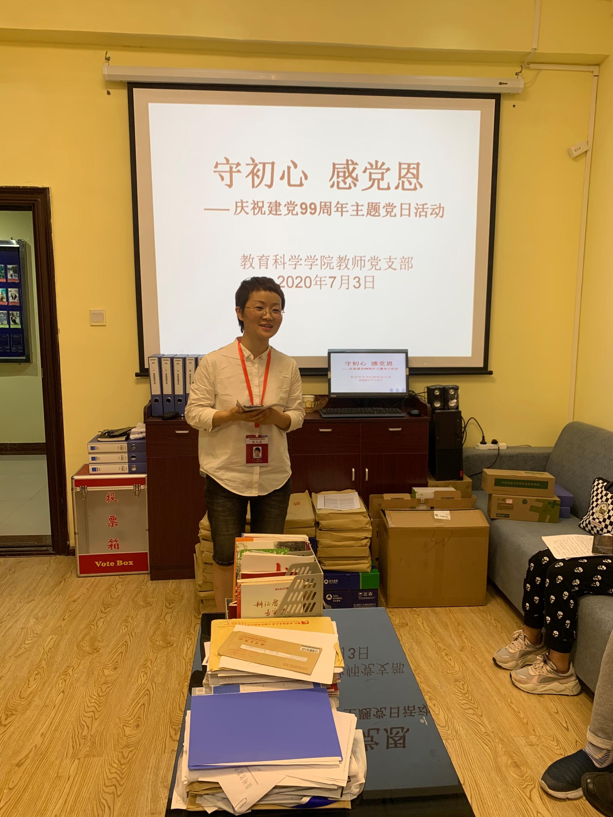 全体教师党员在党员活动室开展了主题党日学习活动:“守初心,感党恩”—庆祝建党99周年,此次活动由教师党支部书记李琴主持学习。