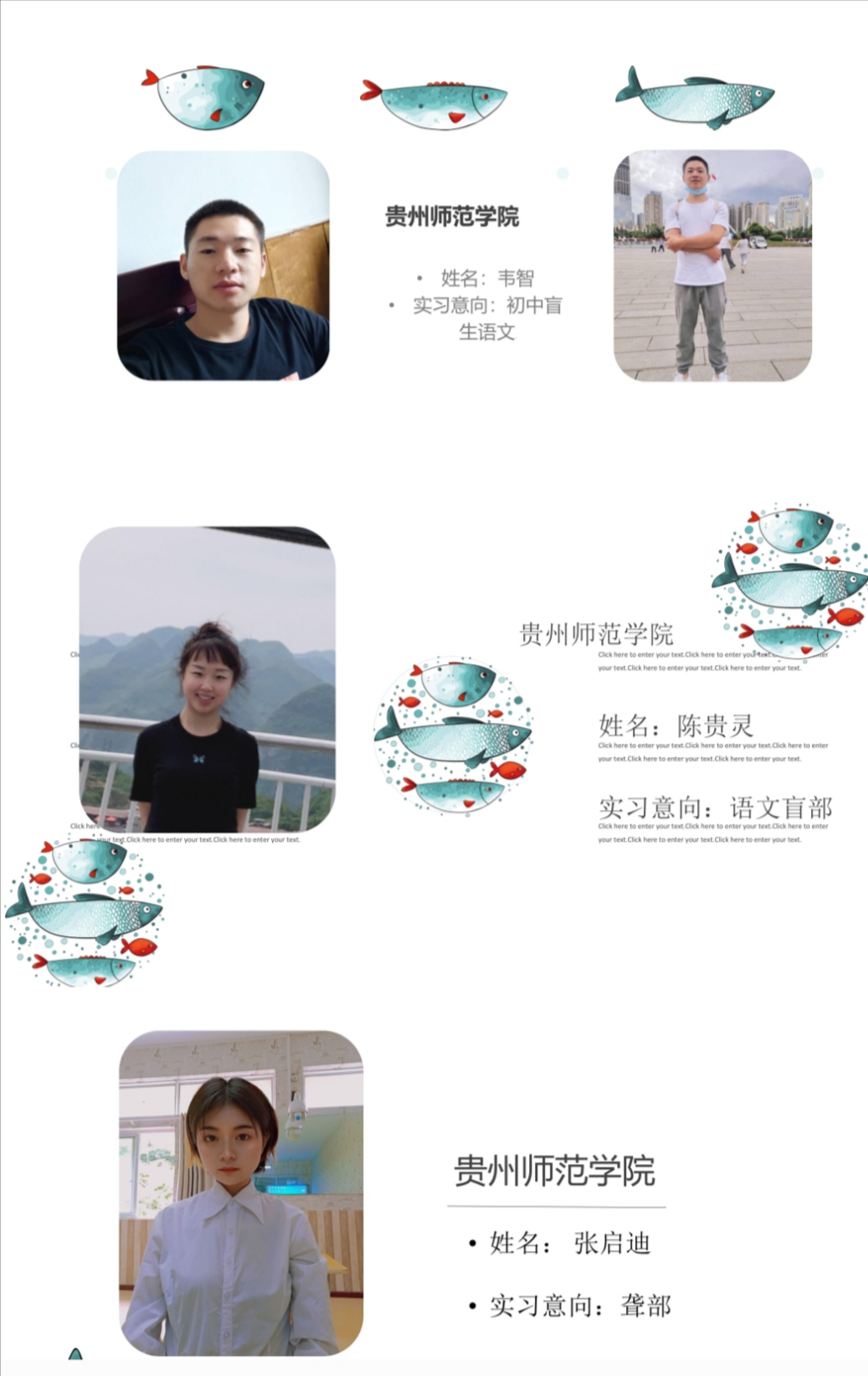 带队教师吴晓英等。会议由该校教务处副主任邹永红主持,就新学期实习教师的工作安排与教师发展等事宜展开。会上,根据实习生的就业意向和实习学校的发展工作需要,贵阳市盲聋哑给我校每位实习生都安排有三位导师,有学科指导教师、管理岗位教师和班主任指导教师等,让学生从多元化的学科知识、管理实践以及班主任工作等方面都得到全面的培养。最后,动漫花园