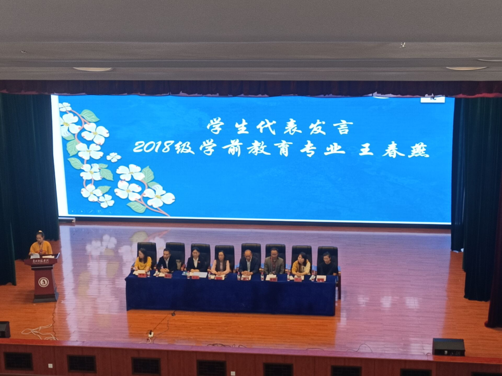 开学典礼在庄严的国歌声中拉开了序幕。在嘹亮的国歌声中,学院正式迎来了充满生机与活力的2020级新生。接着,第十二届学院团委学生会主席2018级学前教育专业的王春燕作为老生代表发言。王春燕给学弟学妹们描述了丰富多彩的大学生活。其次,2020级艺术教育的苏慧作为新生代表发言。她的发言中充满了对新生活的期待和新学期的憧憬。最后,学院领导为大家送上新学期寄语,期望同学们创立优良的学风院风班风,养成良好的学习、行为和生活习惯,争当健康向上的新时代的新青年。