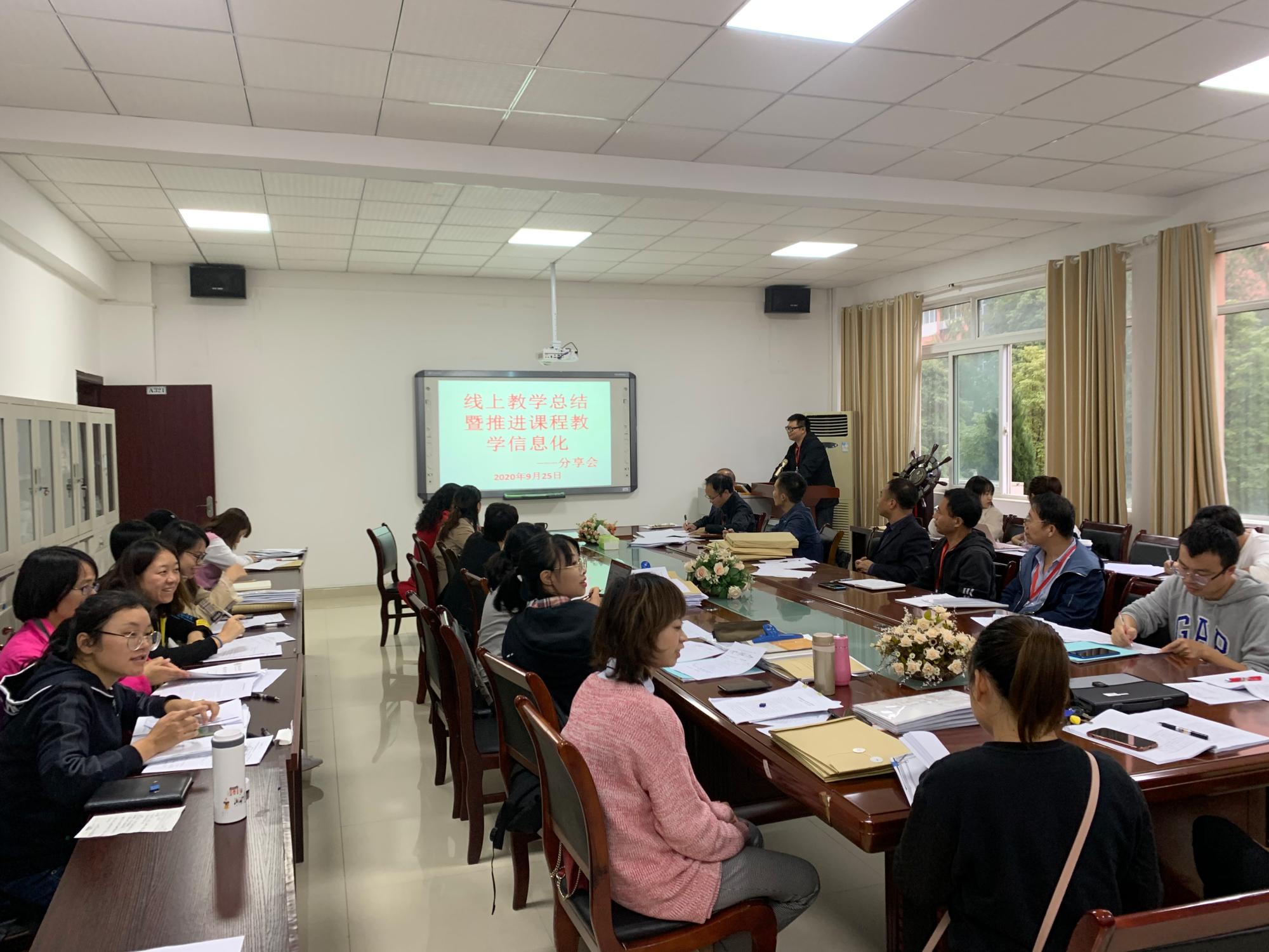 推进课程教学信息化分享会在逸夫楼322会议室召开。分享会由副院长黎平辉主持,院党委书记彭祥友、院长刘红、党委副书记傅小芳、副院长袁川以及各专业全体教师参加了此次会议。