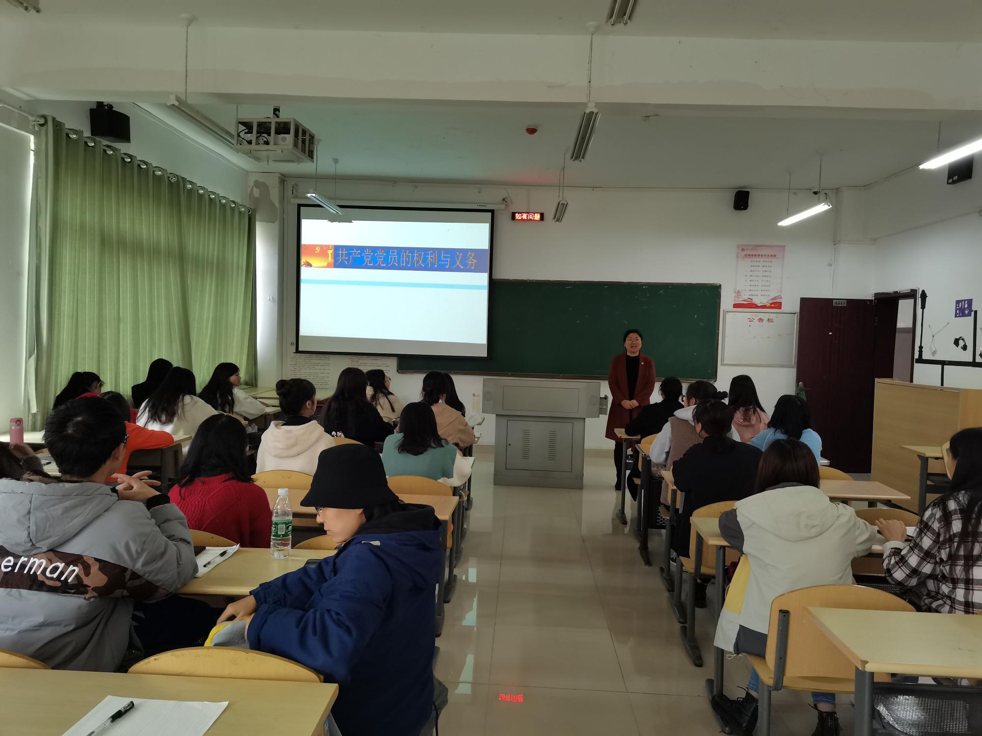 党委副书记傅小芳以“共产党员的权利和义务”为题,在逸夫楼515教室为全体参训学员讲授了内容丰富、意义深刻的一课。