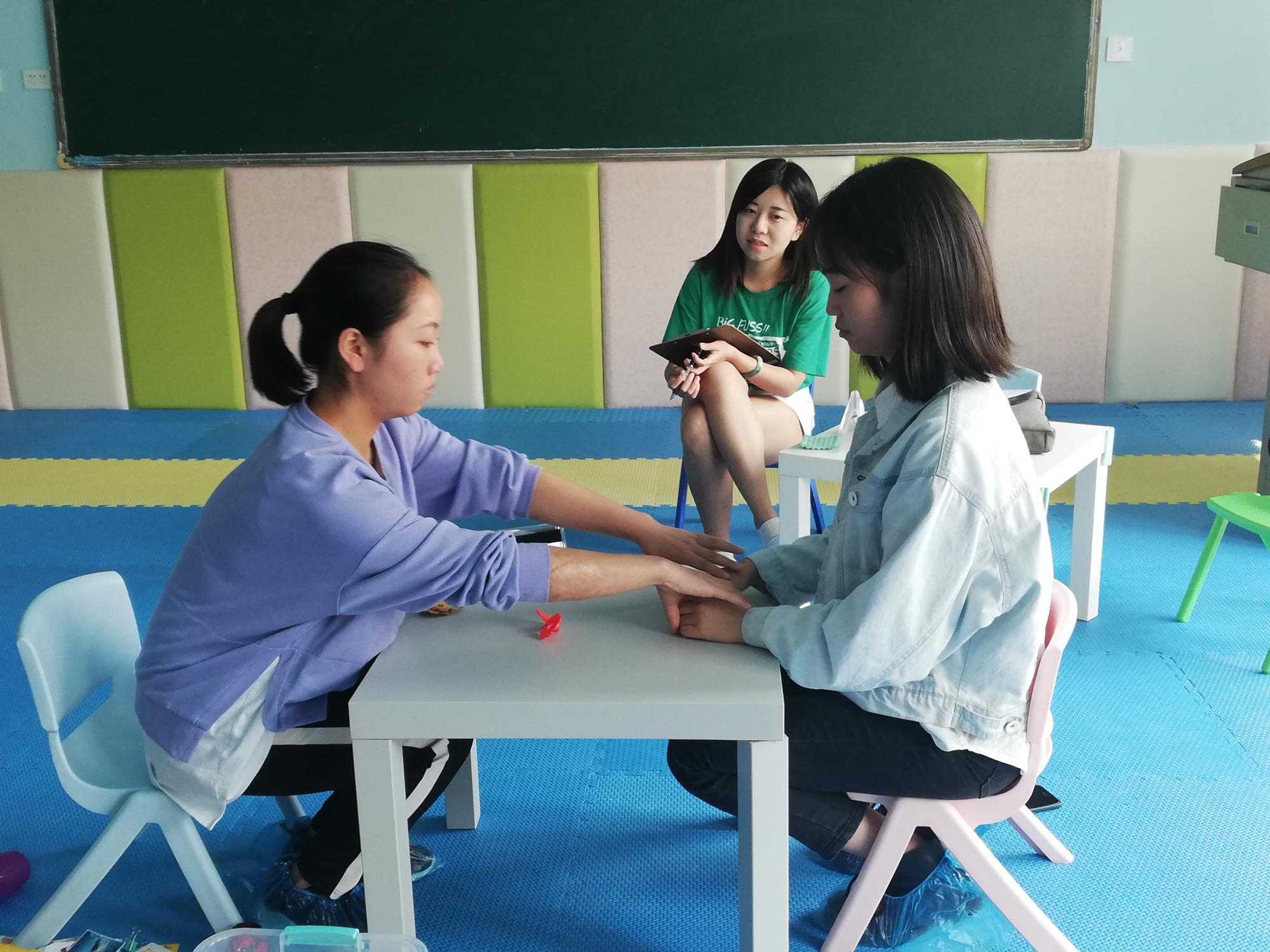 此次考核历时3个小时,考核内容主要围绕自闭症儿童初阶课程:听指令、动作模仿、命名、物品操作模仿、分类、配对等,另外结合三种教学策略与提示系统,考查新成员在随机给予的课程中如何使用策略和提示系统进行操作演示。