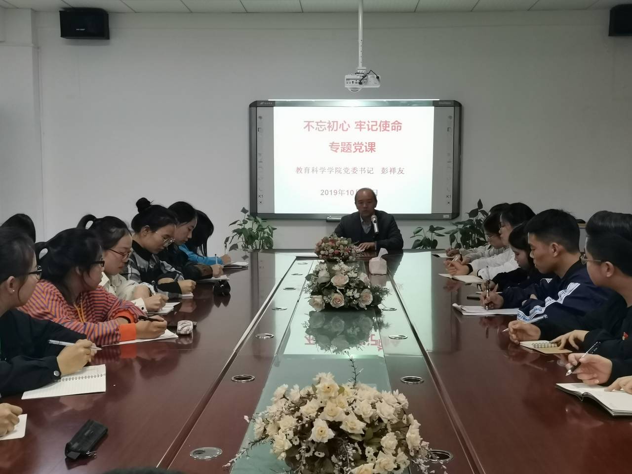 学生党支部全体学生党员开讲“不忘初心、牢记使命”主题教育专题党课。