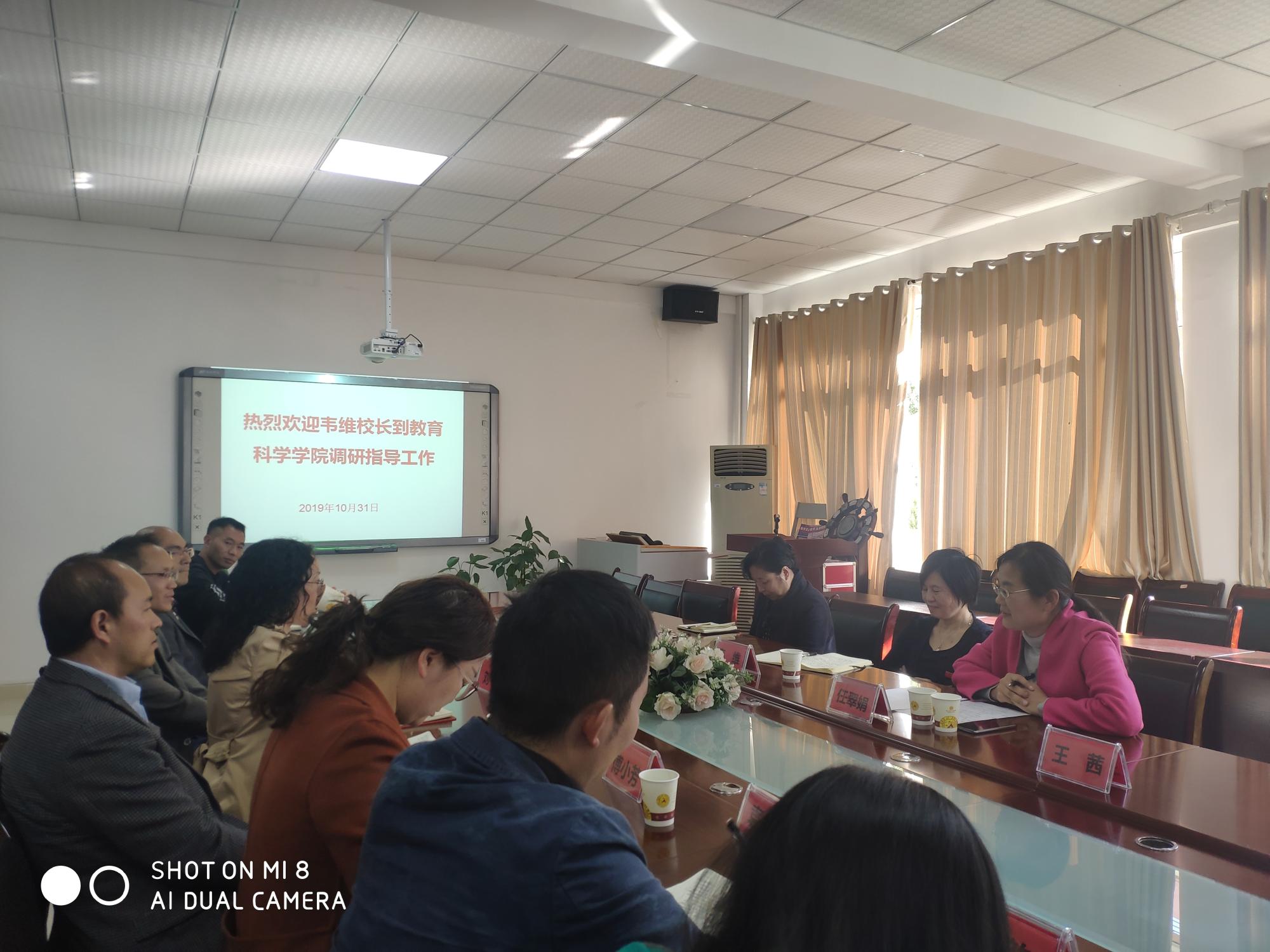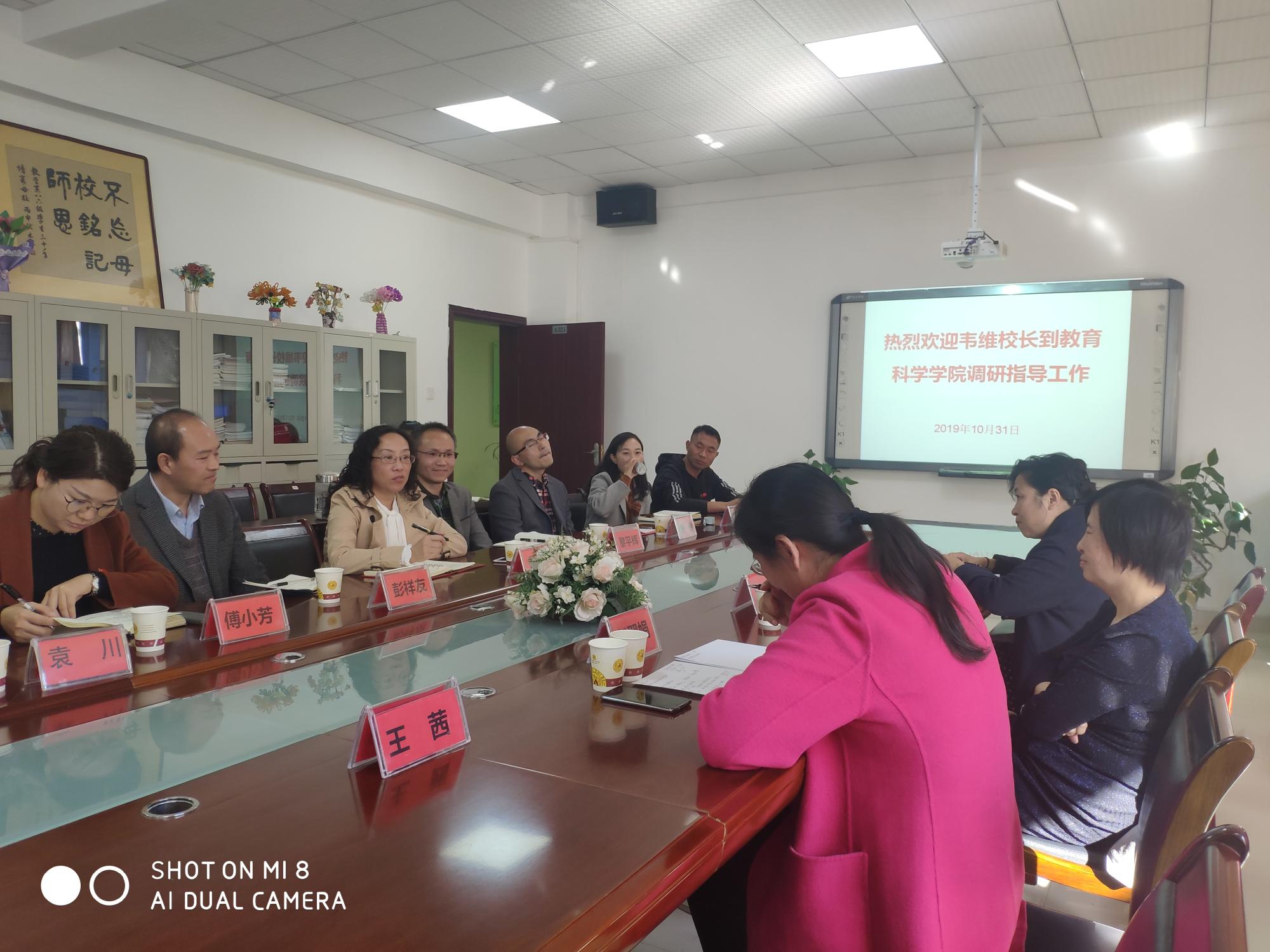 为全面推进学校开展“不忘初心、牢记使命”主题教育走向深入,增强守初心、担使命的思想自觉和行动自觉,10月31日下午3点,校长韦维带领科研处处长王平瑞、教务处副处长任翠娟、党政办公室秘书科科长郭亚到教育学科学院调研指导。根据学校主题教育工作安排,此次调研以“双一流”建设为主线,重点了解教学单位在教学、科研、学科建设、人才培养等工作中的难点问题,为检视问题、整改落实提供重要依据。动漫花园