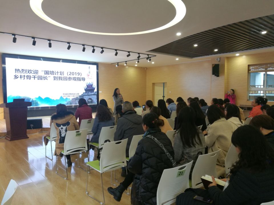 出发前往观摩幼儿园。青岩幼儿园的特色是地方文化融入园本课程,青岩幼儿园首先组织幼儿表演“布依族歌曲”对前来观摩学习的园长和老师表示欢迎。接着带领学员们观看、体验美食街活动及观摩自主游戏活动。随后,由青岩幼儿园黄姣园长、陈琼及万良婷老师分别作了《立足于实际办教育》、《青岩课程》、《班级课程青岩印象》的主题报告。