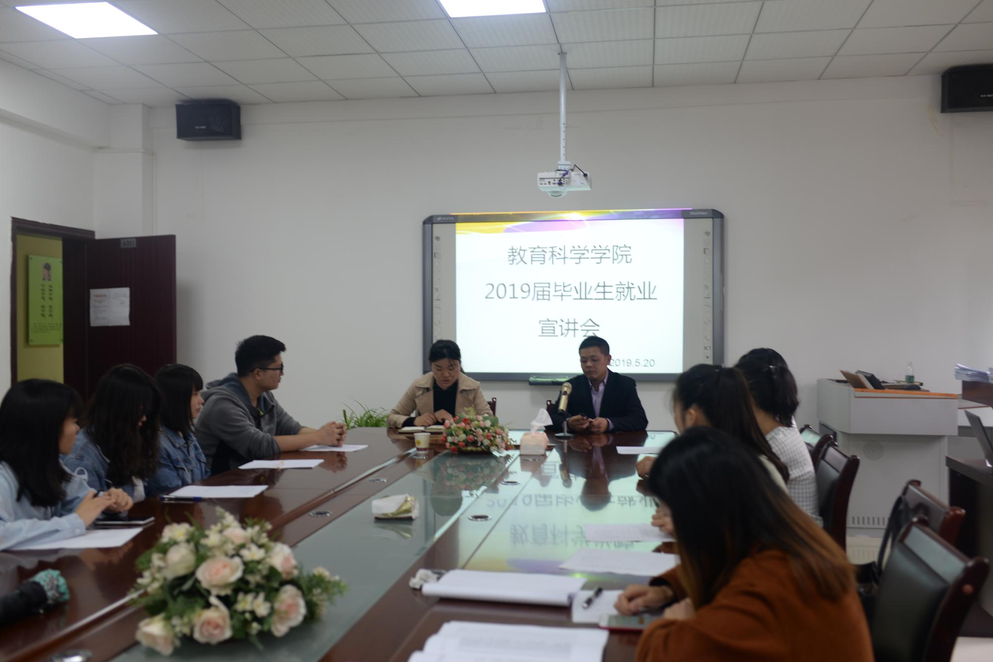 在逸夫楼321会议室举行2019届毕业生就业宣讲会。本次宣讲会邀请到贵州方舟渡教育科技有限公司董事长张顺江进行宣讲。张顺江是团中央关爱成长工程——四好少年宣讲团特邀讲师、四川省妇女联合会家庭教育特邀教师、贵州省家庭教育——家风家训特邀讲师、贵阳市道德讲堂特邀讲师。2019届特殊教育和应用心理学专业的部分学生聆听了此次宣讲会。本次宣讲会由院党委副书记傅小芳主持。