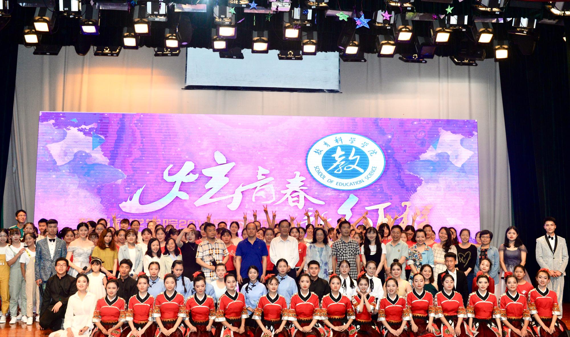晚会在团委、学生会成员激情澎湃的舞蹈中火爆开场,带动了现场观众的热情。随后大屏幕上的回忆录吸引了现场观众的目光,往事纷飞,点点滴滴都是19届毕业生们对青春、对母校的留恋,美好的时光尽展荧屏之中。手语舞《最初的梦想》使我们坚信,只要坚持,就会到达目的地;只要努力,就会成功。轻快愉悦的百鸟争相鸣唱,精彩的舞蹈《十里路》,曼妙的舞姿,火辣的音乐,将现场氛围推向高潮。紧接着,学院领导及老师们对19届毕业生寄语,祝愿他们前程似锦,幸福美满,也希望他们常回家看看。毕业生们也感恩老师在四年来对他们的教导,纷纷落泪,虽将离别,但难忘师院。最后,由老师主懿芹带领17学前教育一班的全体同学表演舞蹈“往后余生”为本次晚会完美谢幕。