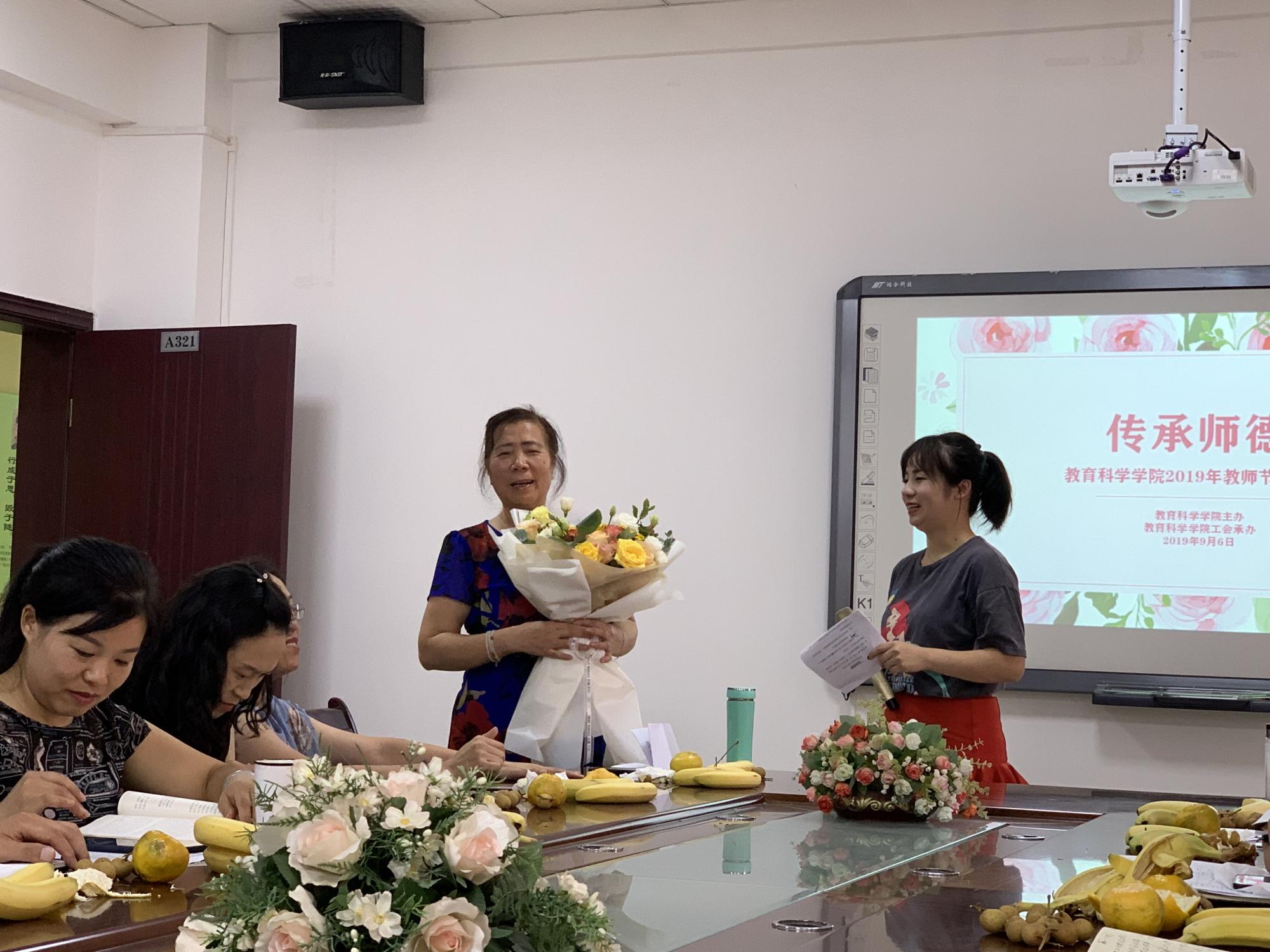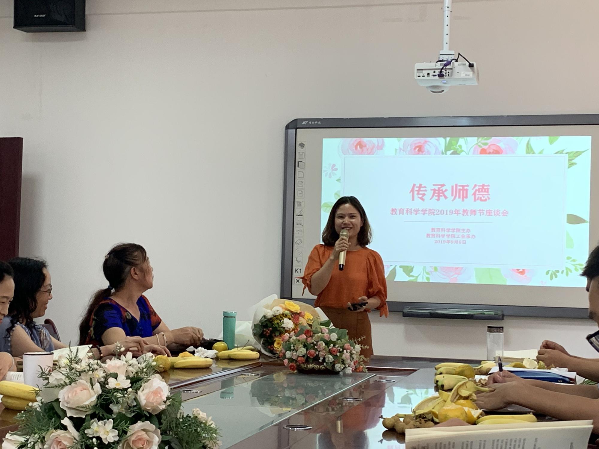 主办、学院工会承办的“传承师德”2019年教师节座谈会在逸夫楼3楼会议室举行。院党委书记彭祥友、院长刘红、副书记傅小芳、副院长黎平辉、副院长袁川出席座谈会,退休教师代表刘启艳教授及全院教师到场参加。座谈会由院工会主席主懿芹主持。