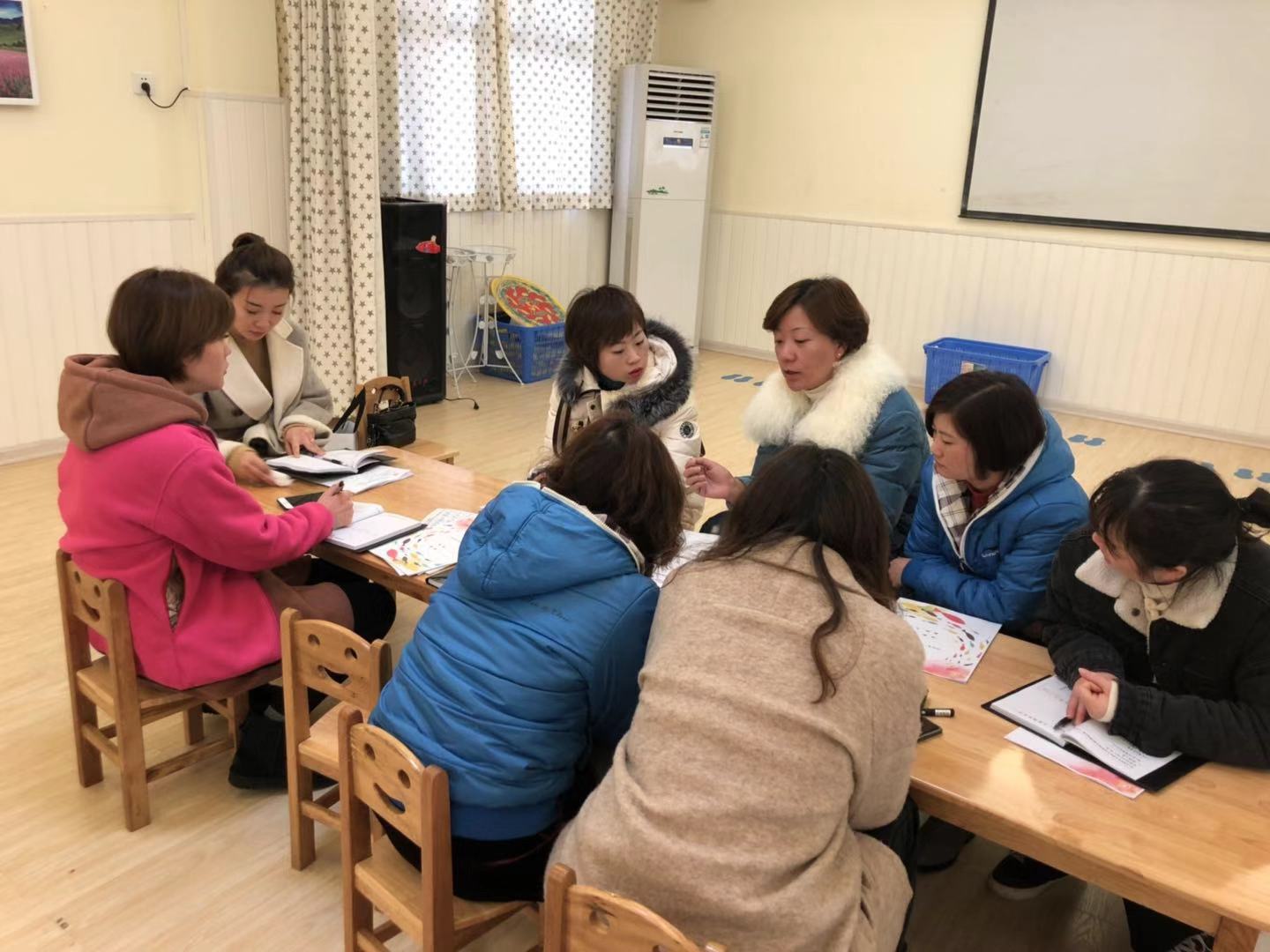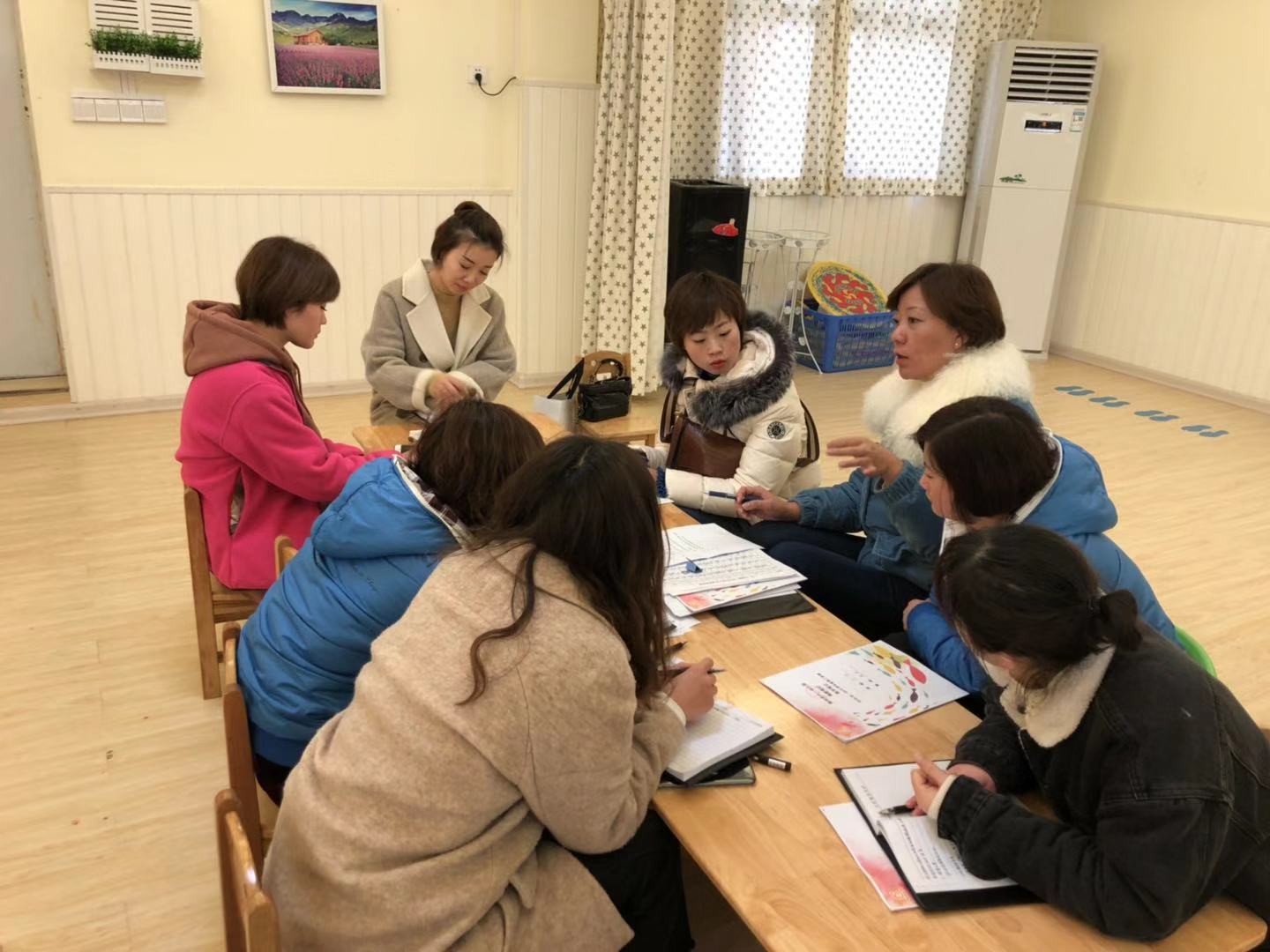 申利丽老师与中班组教师们进行研讨